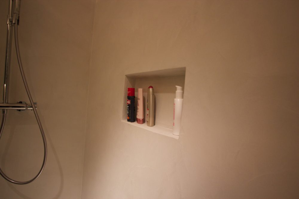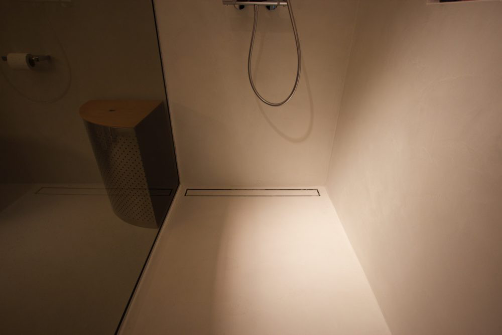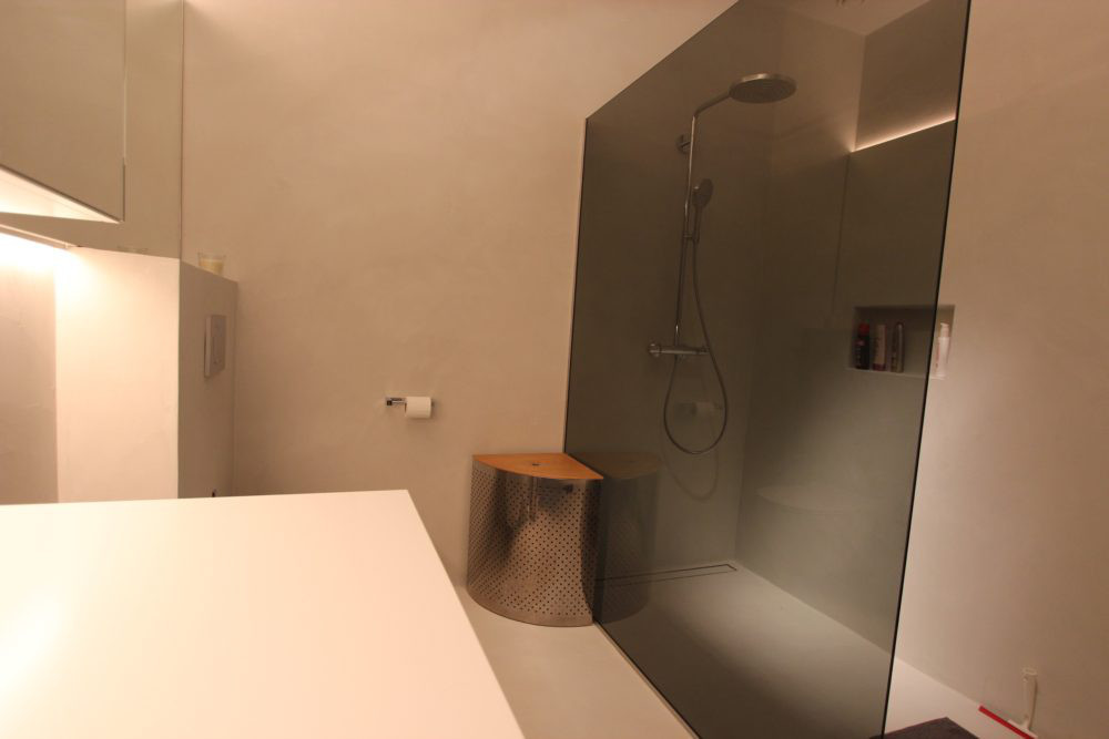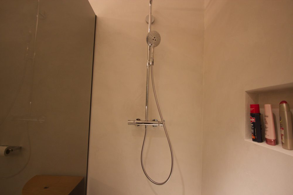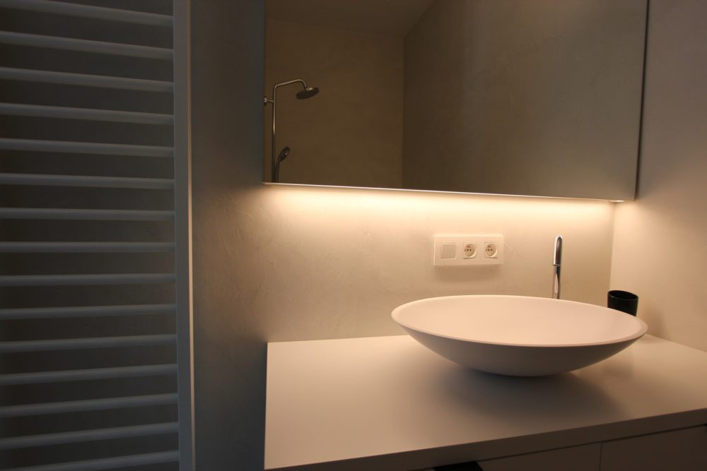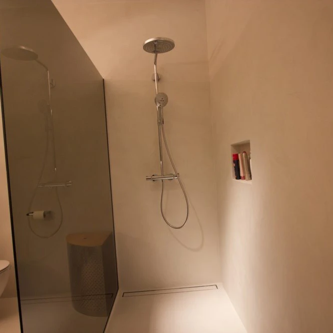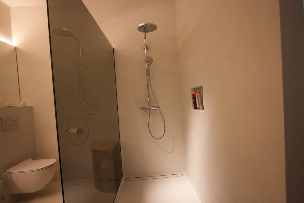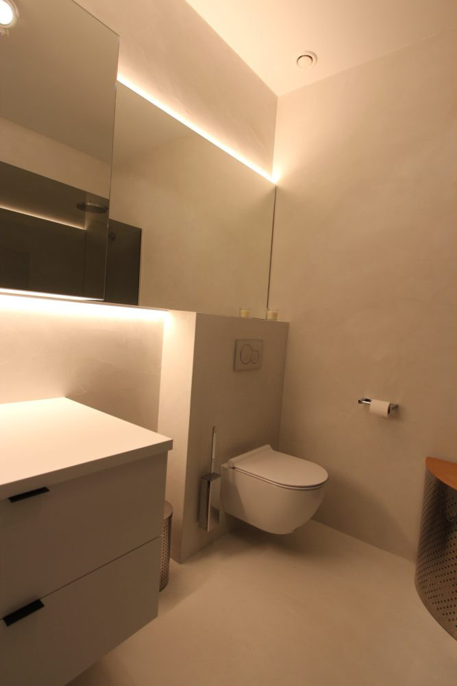 Door gebruik te maken van een heel lichte tint mortex krijgt de ruimte een unieke uitstraling.