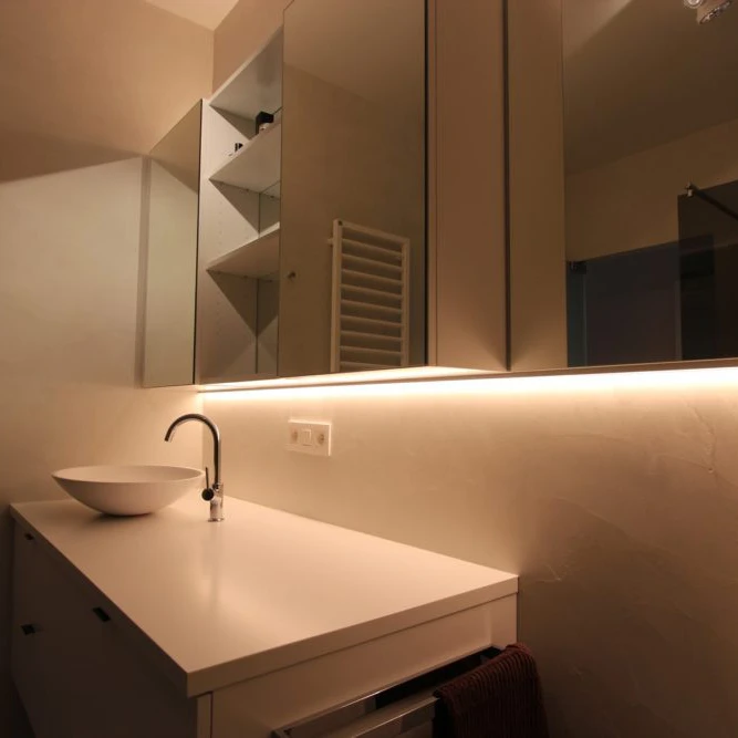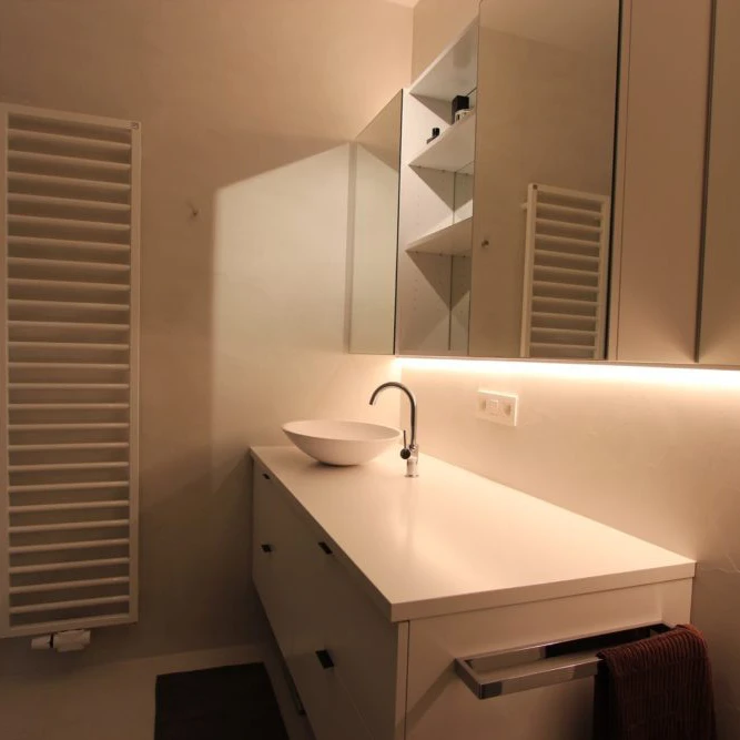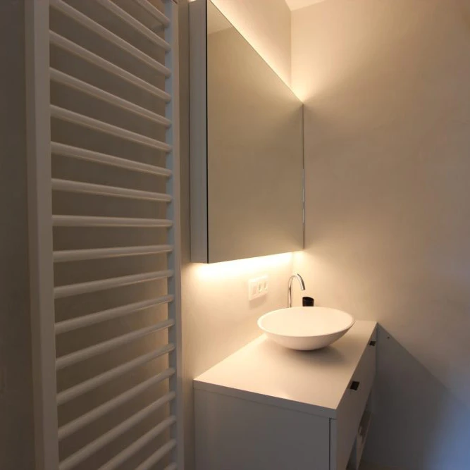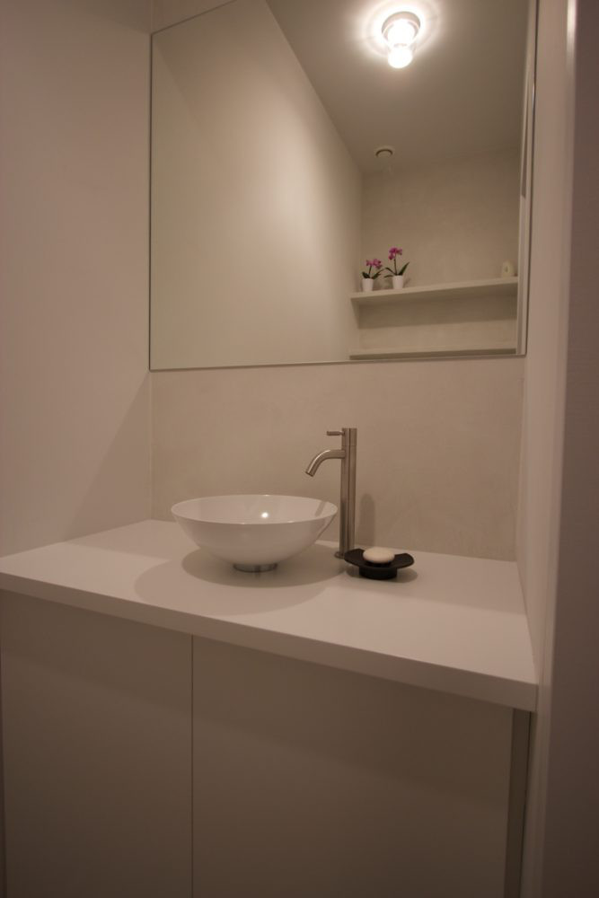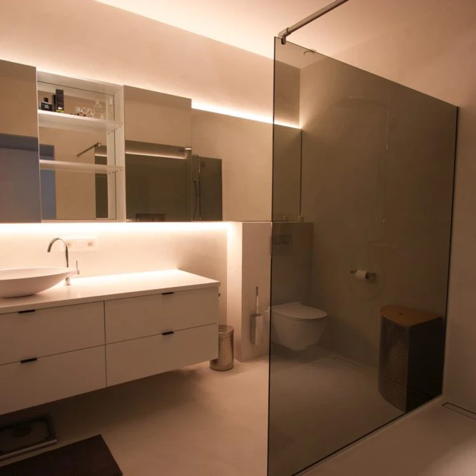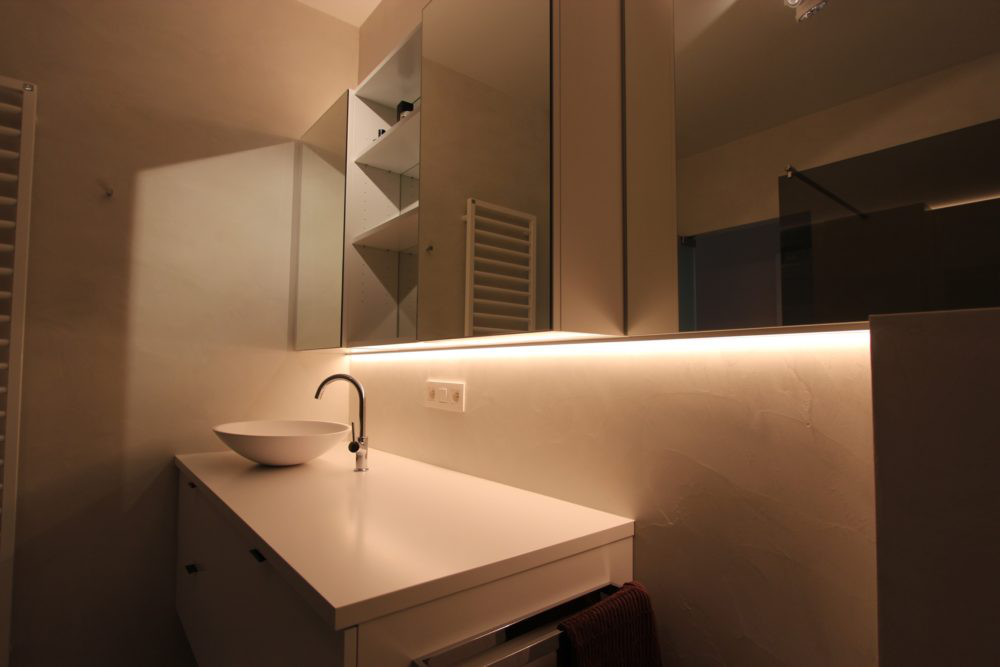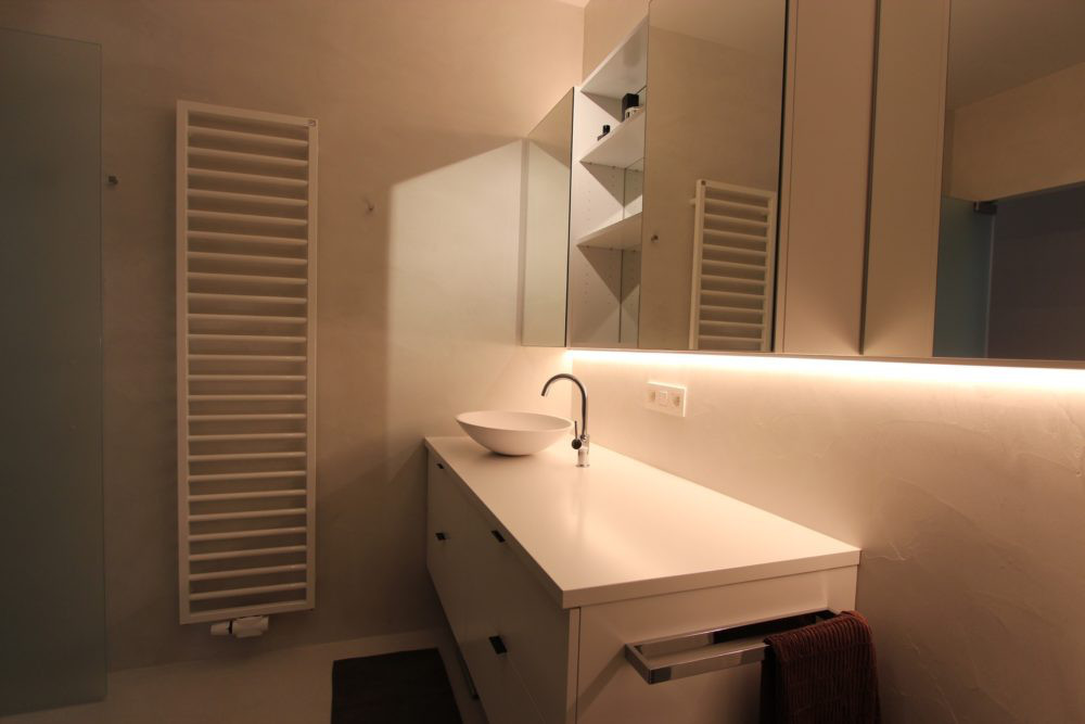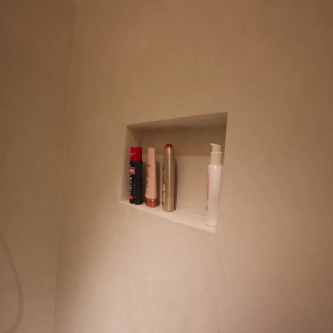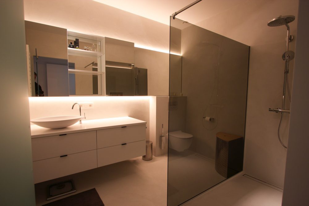 Door gebruik te maken van een heel lichte tint mortex krijgt de ruimte een unieke uitstraling.