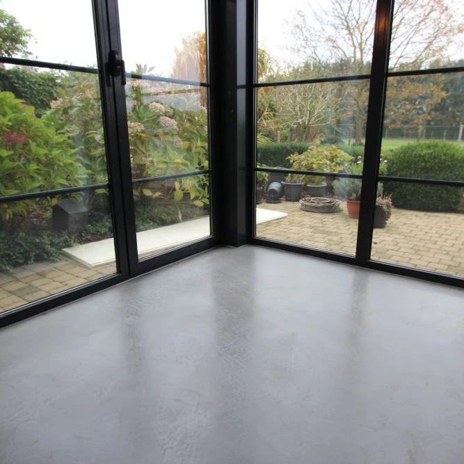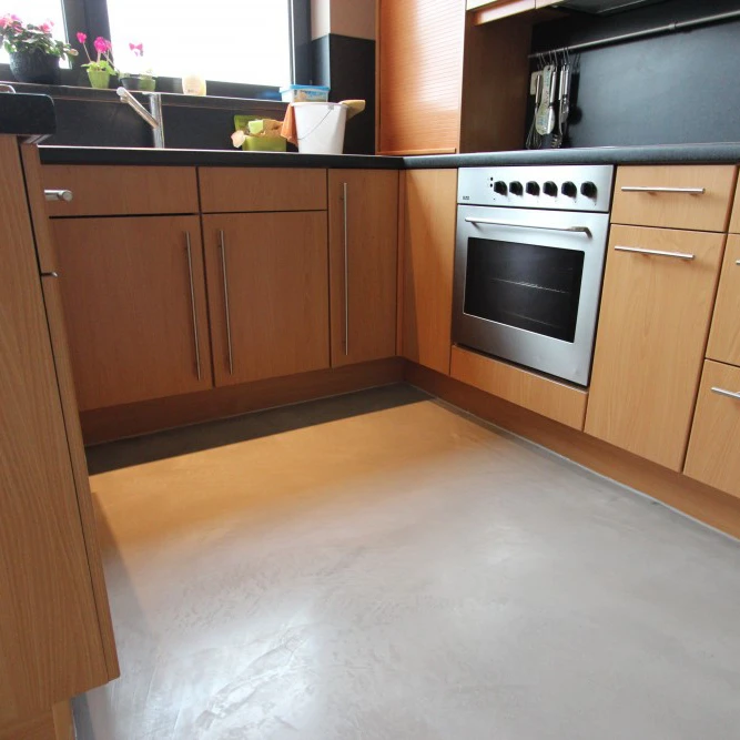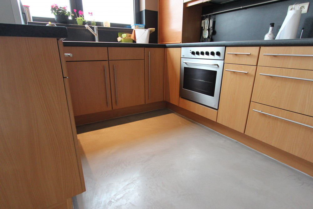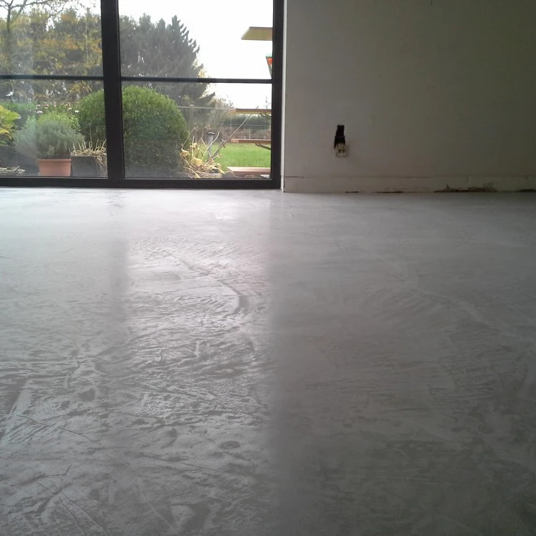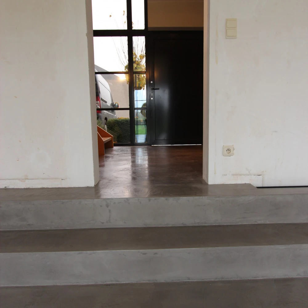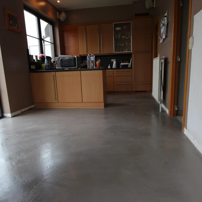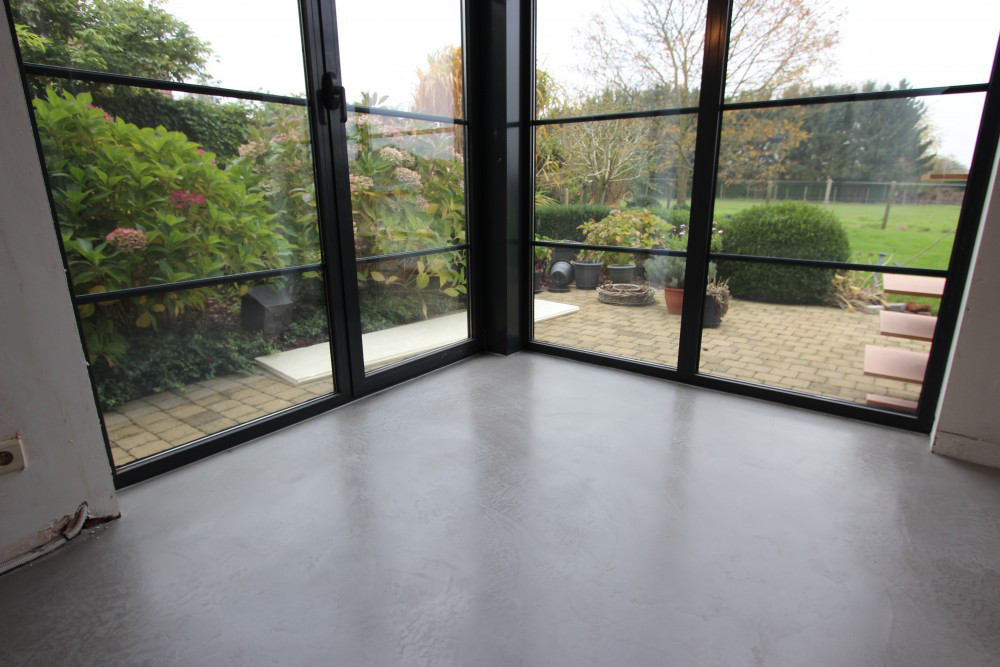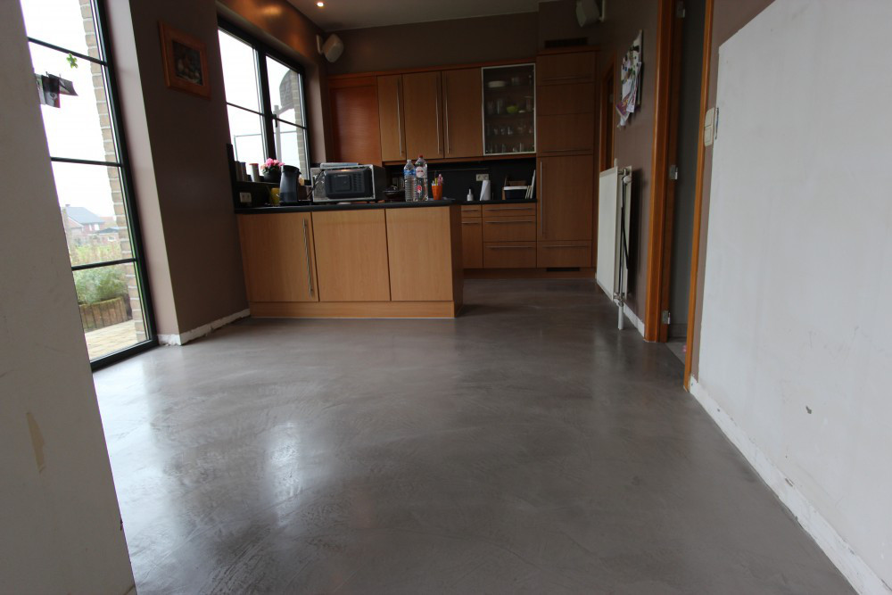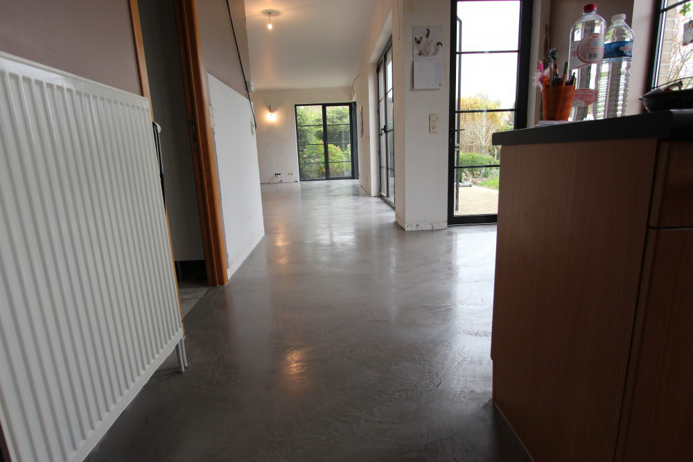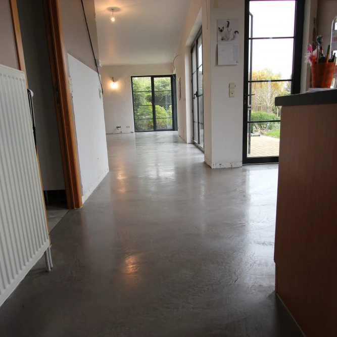 In deze woning in Asse hebben wij over de volledige benedenverdieping Mortex over een bestaande tegelvloer aangebracht.