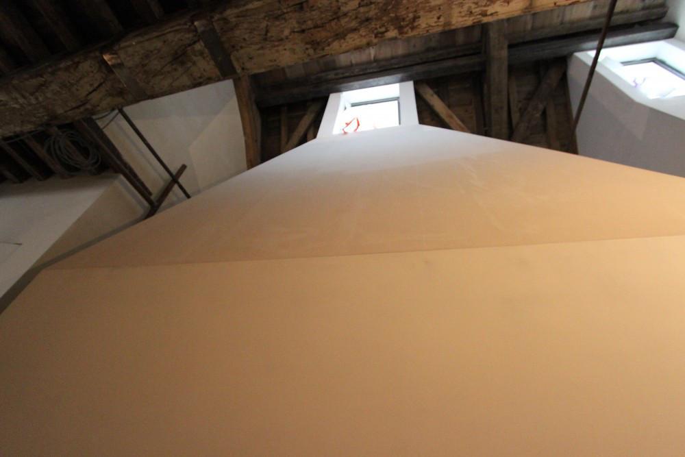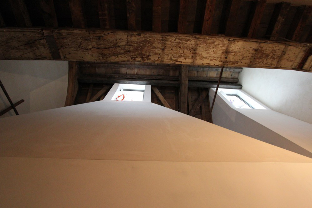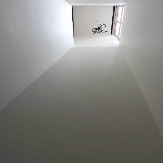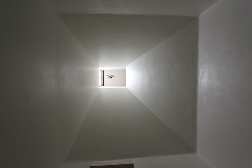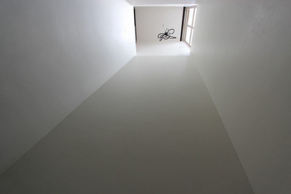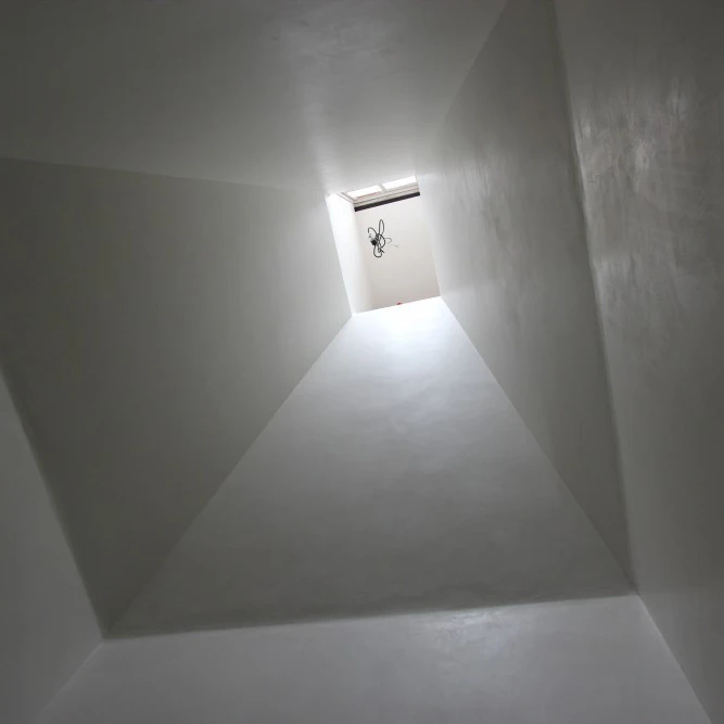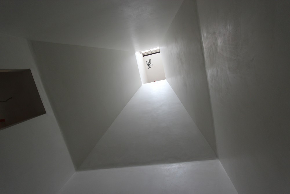 Door gebruik te maken van strakke lijnen, hoge wanden in witte Mortex en de combinatie van het licht dat door de ramen naar binnen valt, oogt het geheel bijzonder ruimtelijk.