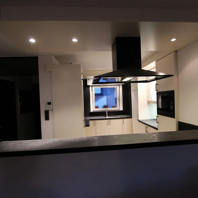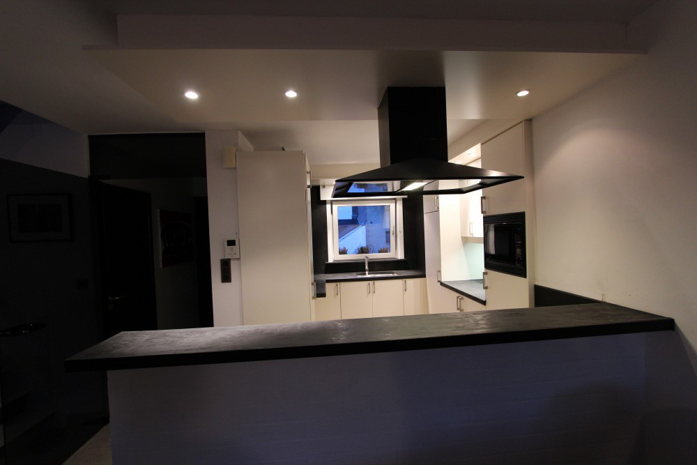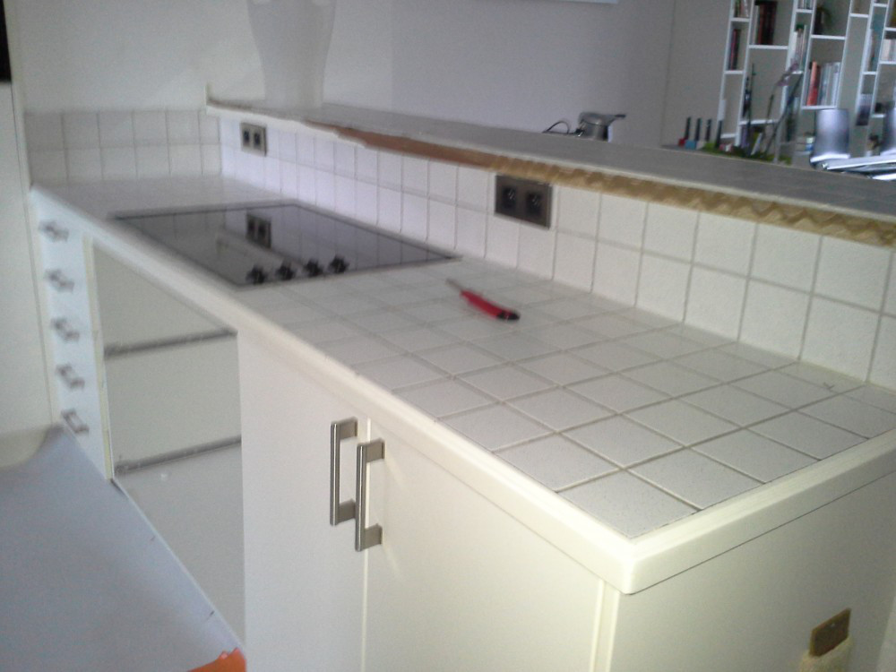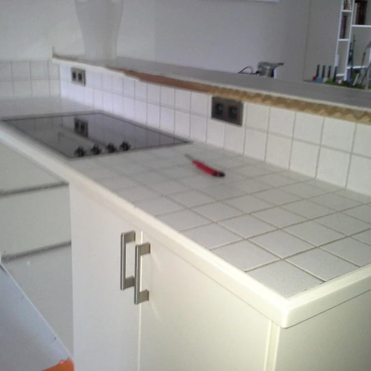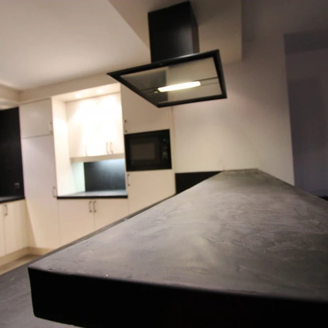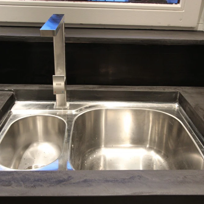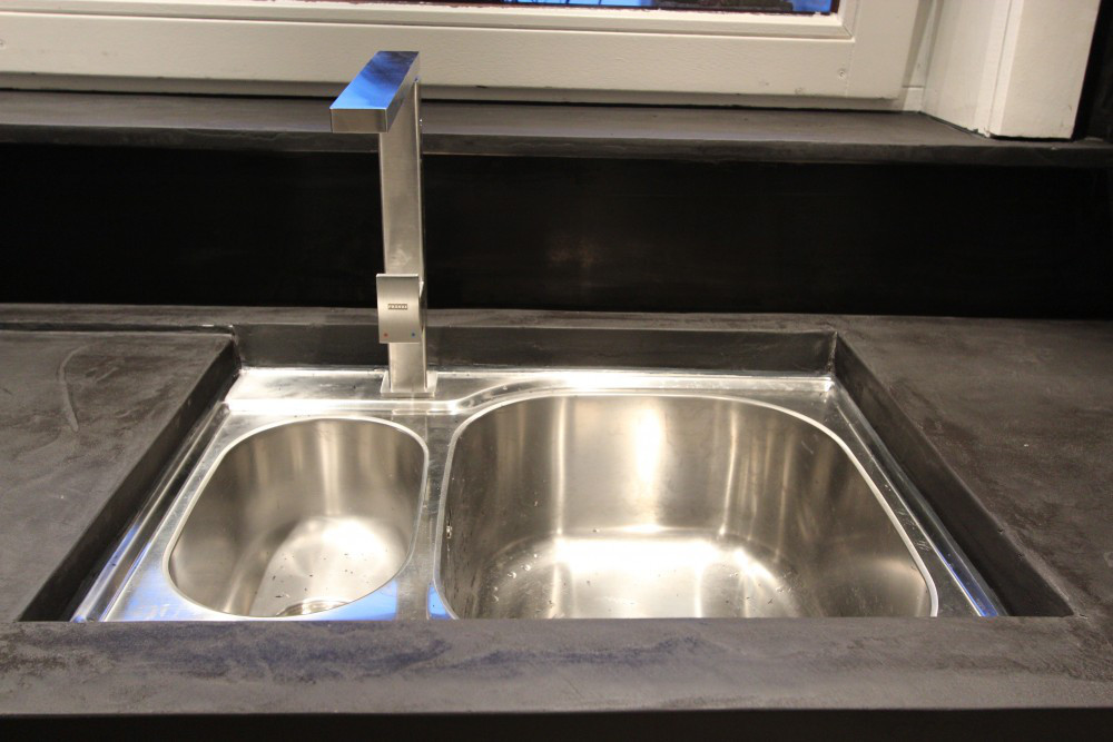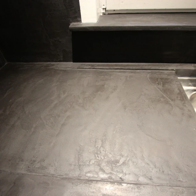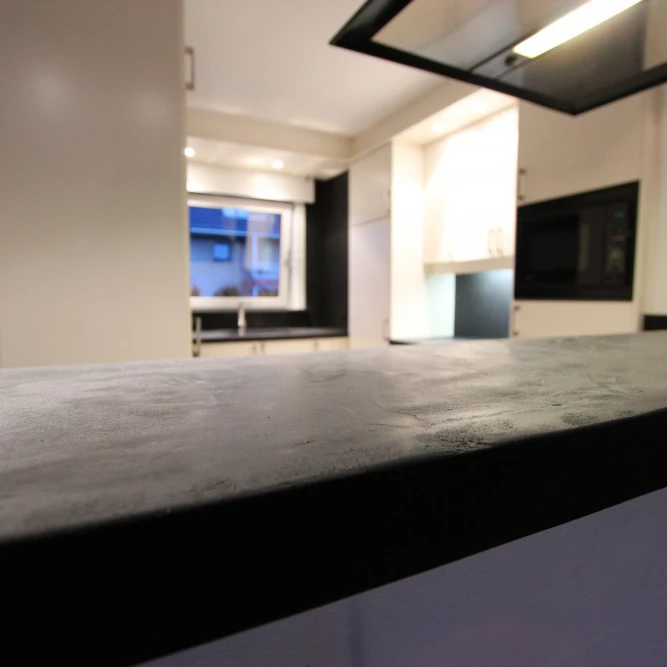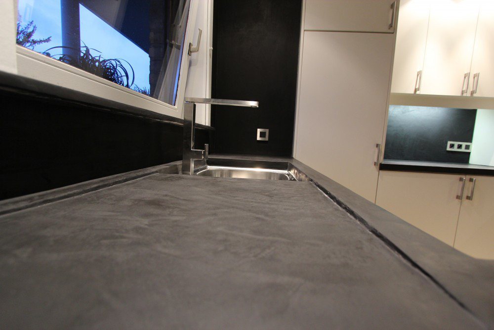 Over het bestaande keukenwerkblad en wanden hebben wij Mortex aangebracht.