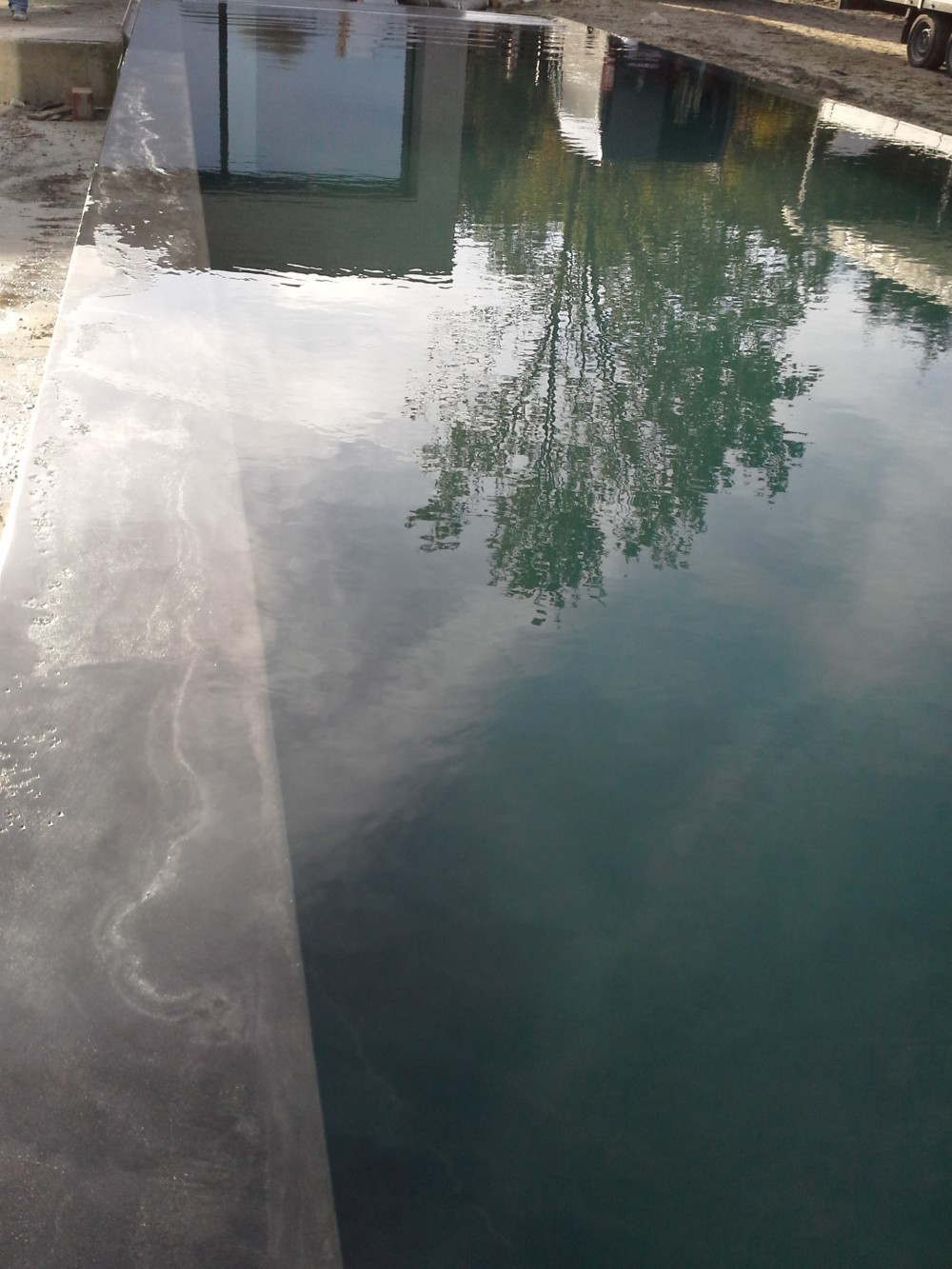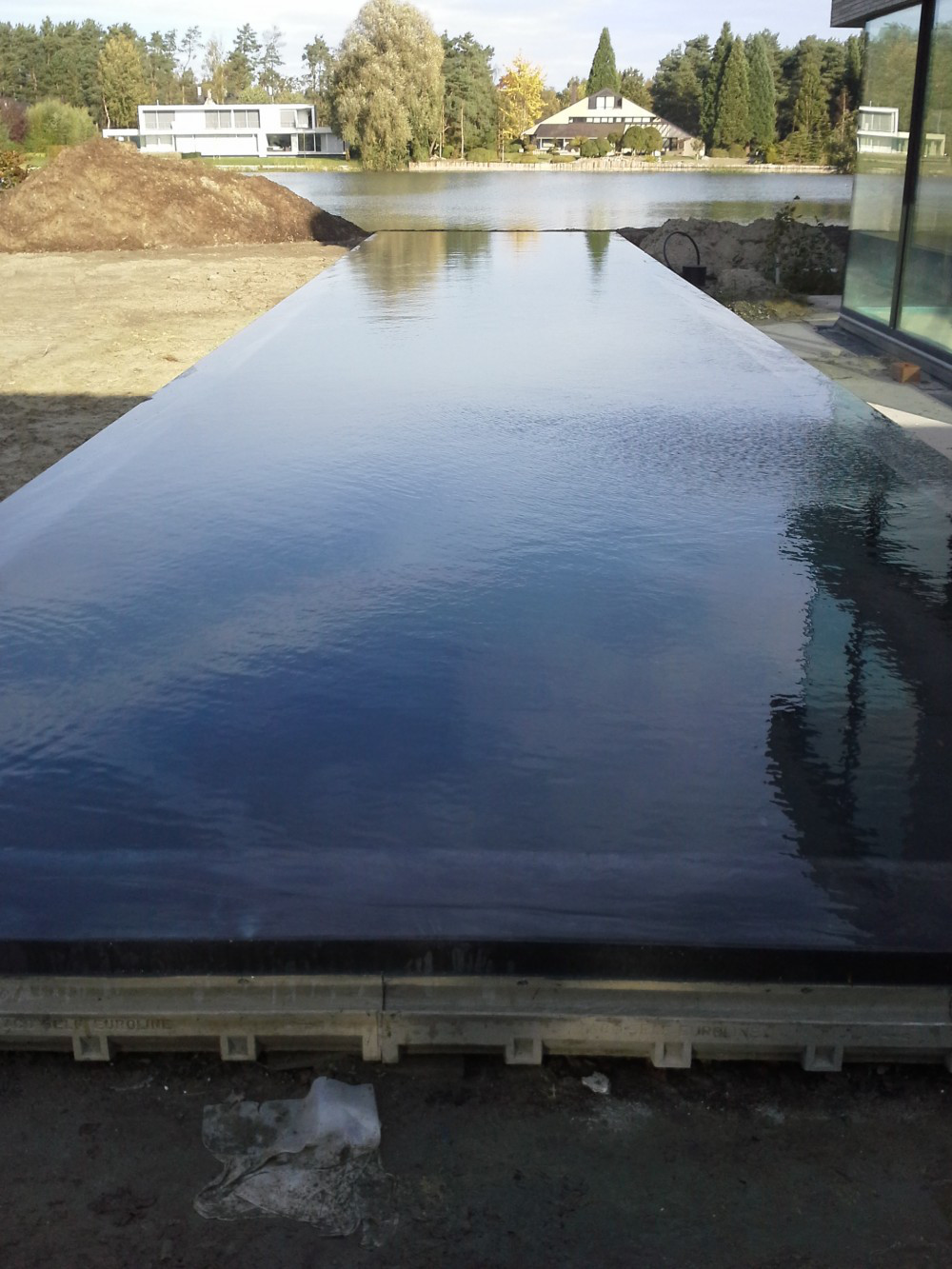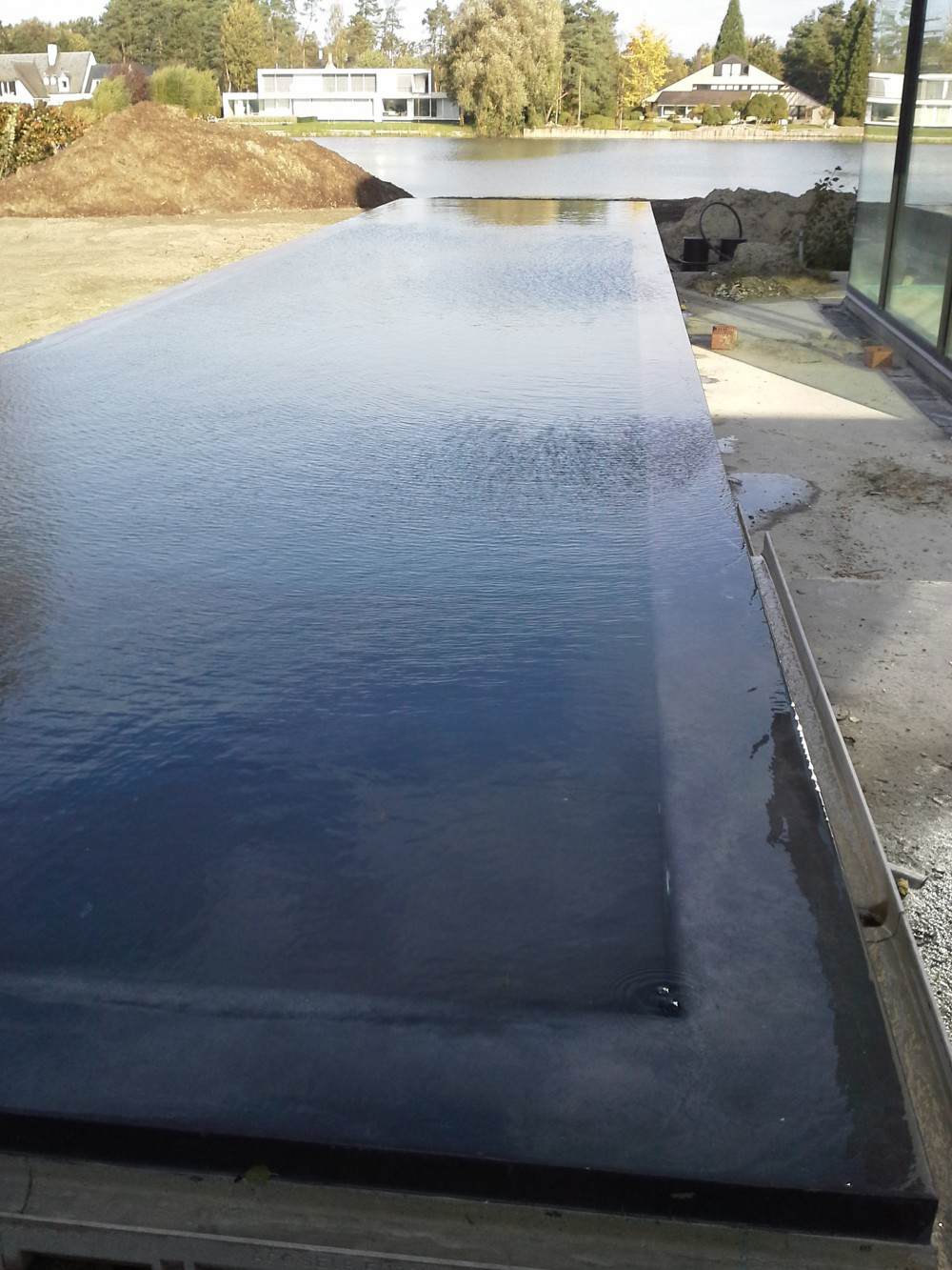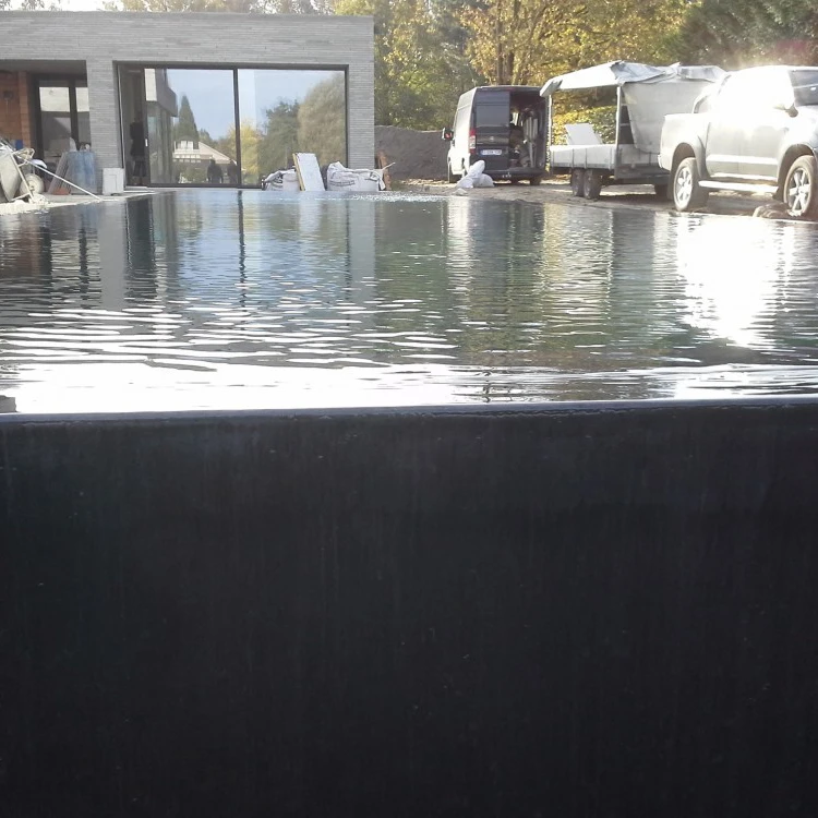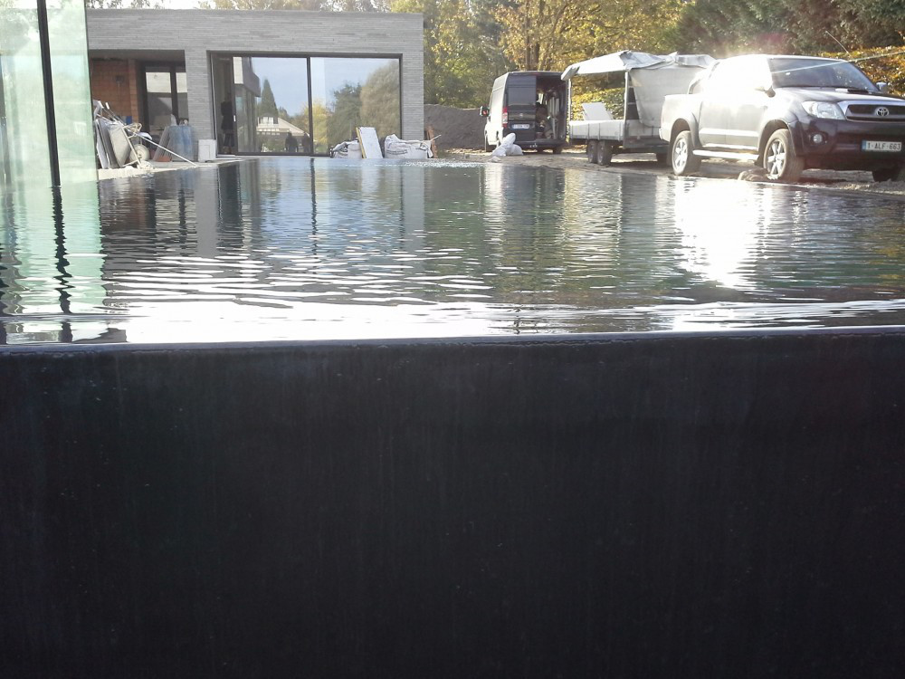 Dit zwembad is uitgewerkt in zwarte Mortex.
