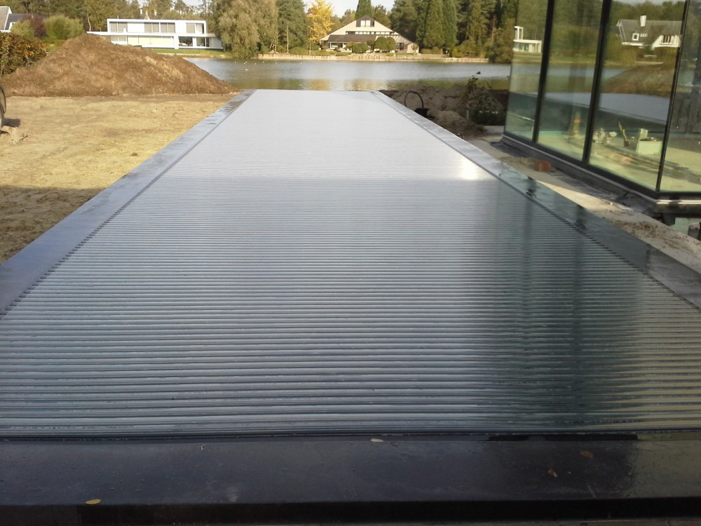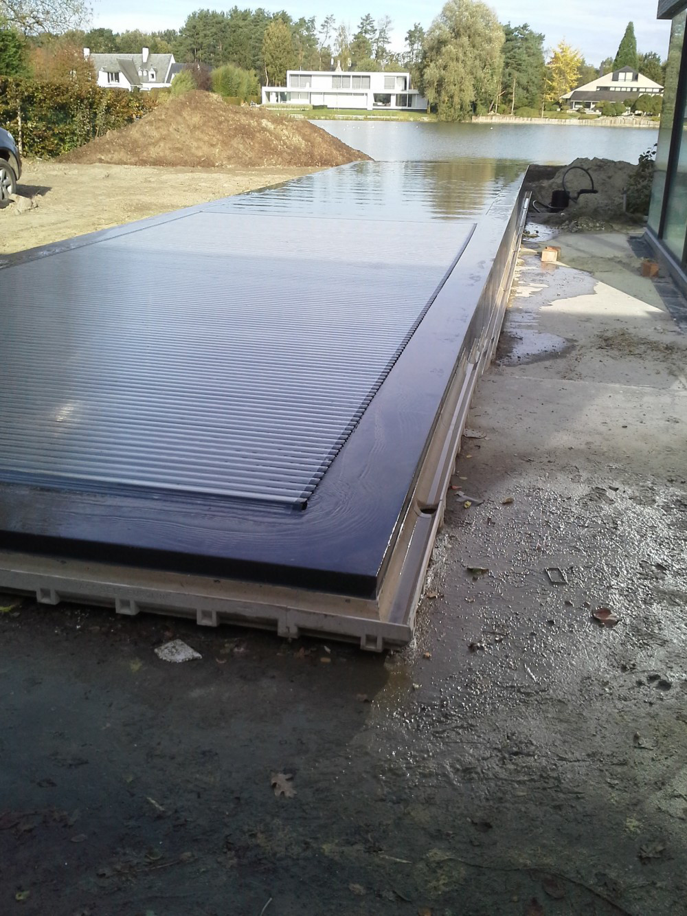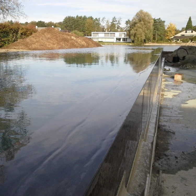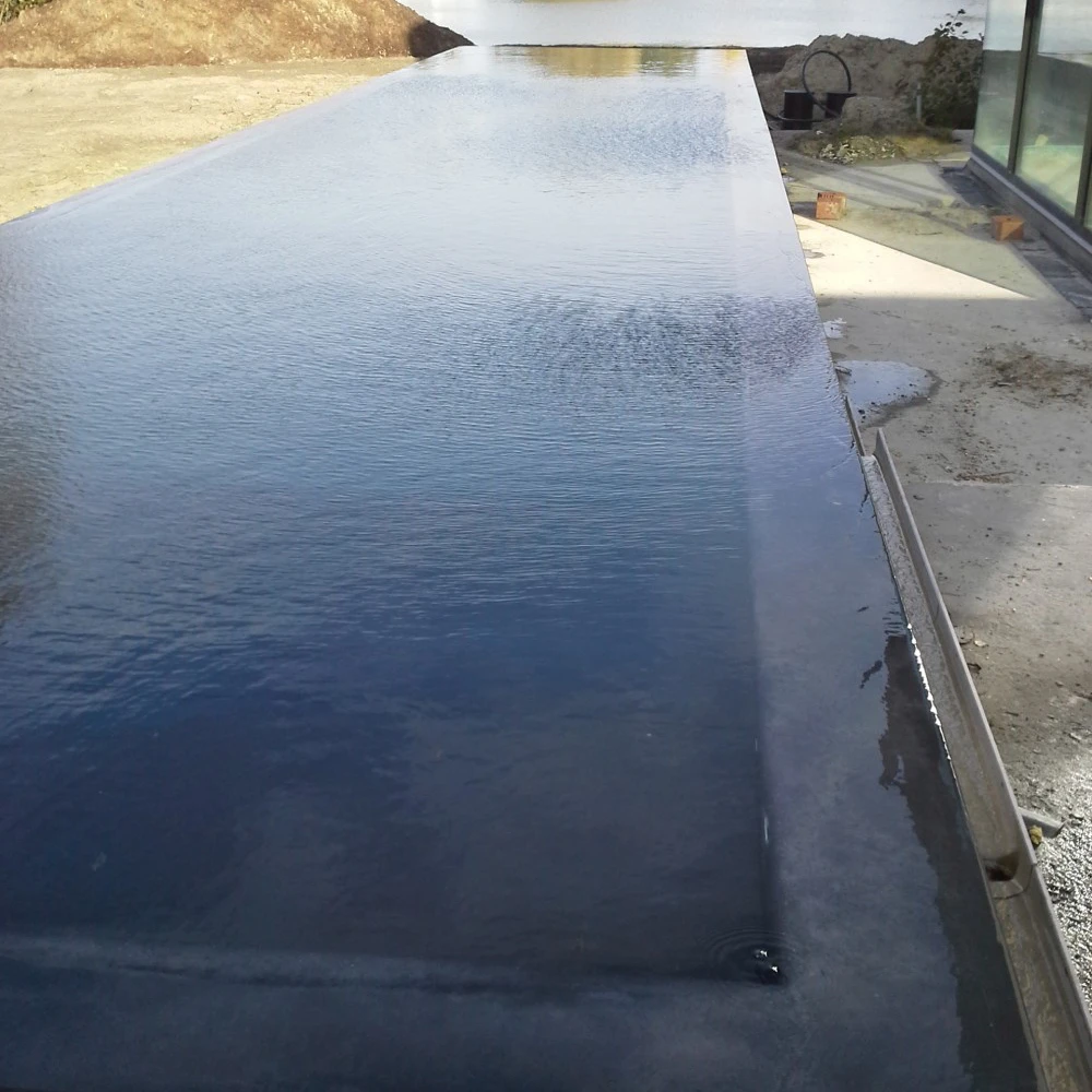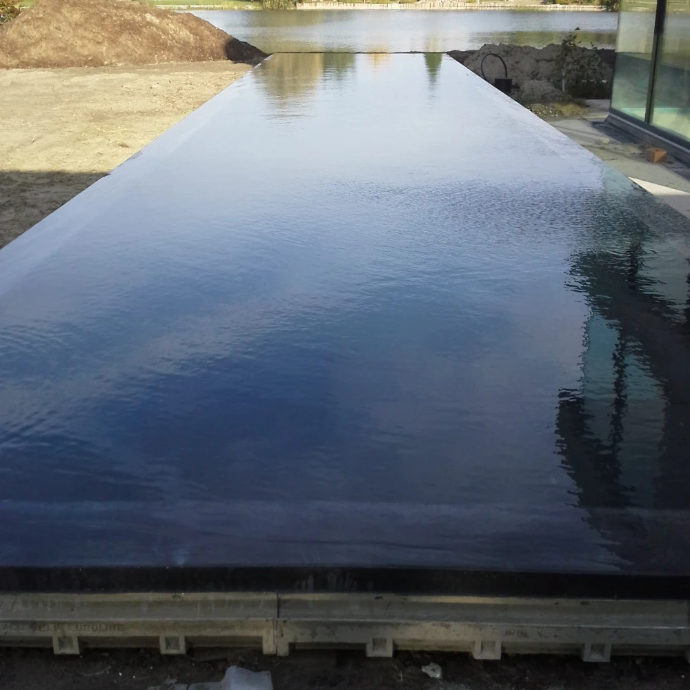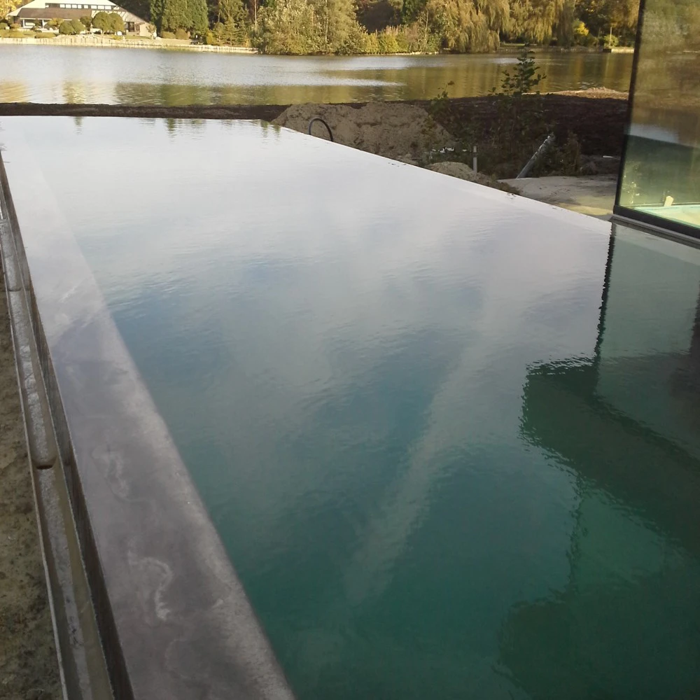 Dit zwembad is uitgewerkt in zwarte Mortex.