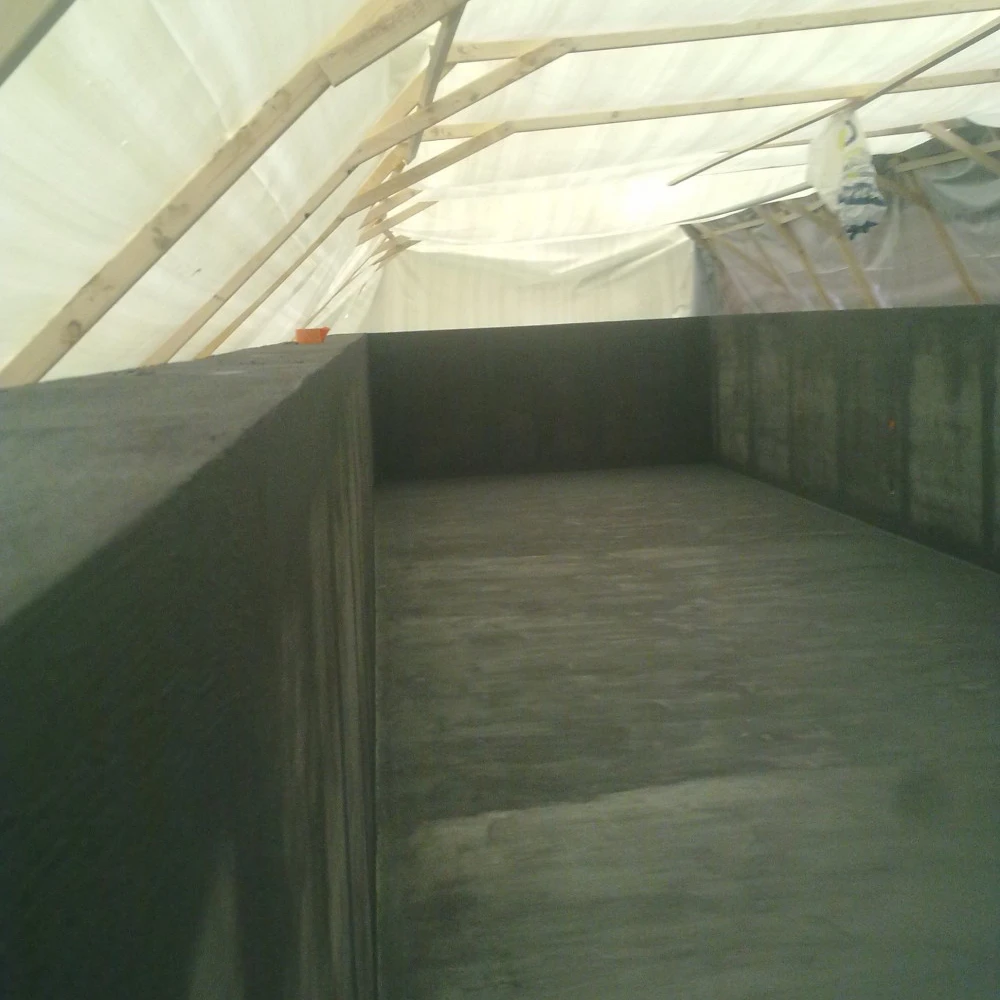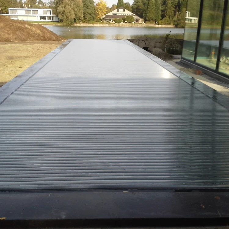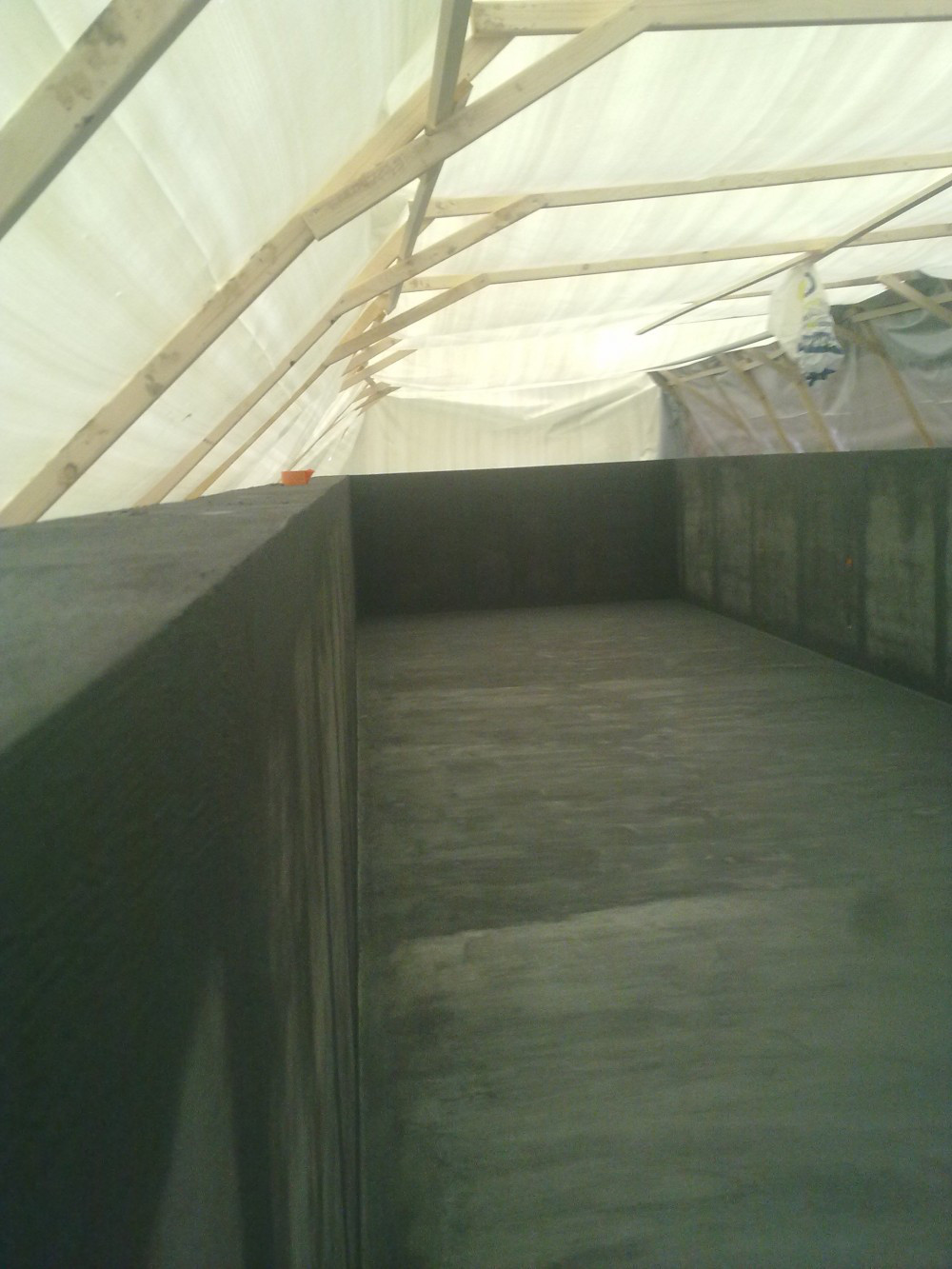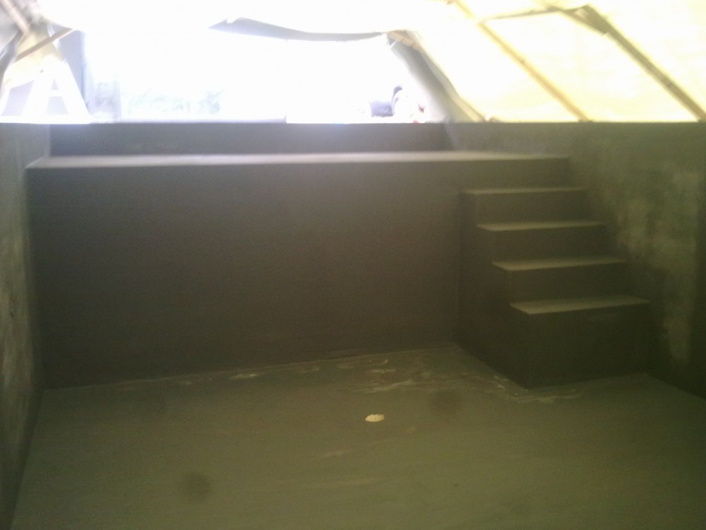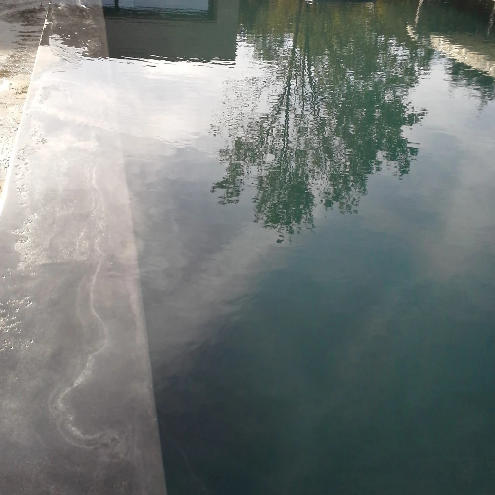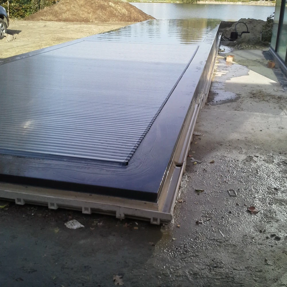 Dit zwembad is uitgewerkt in zwarte Mortex.