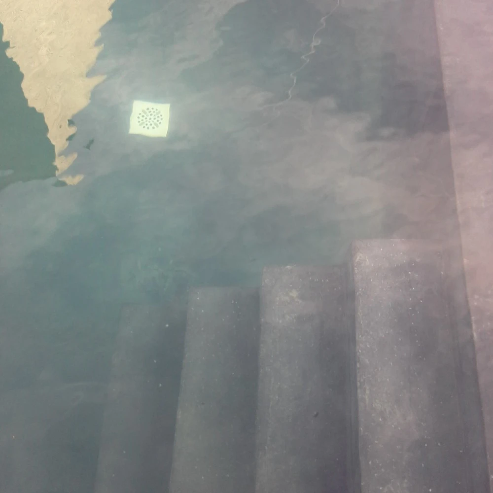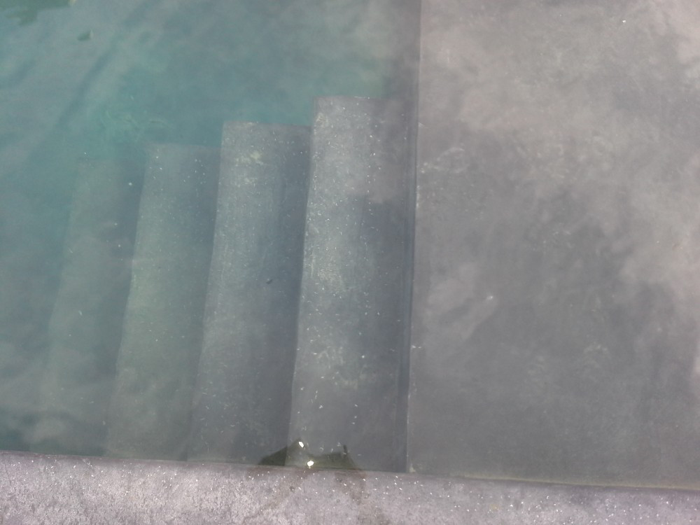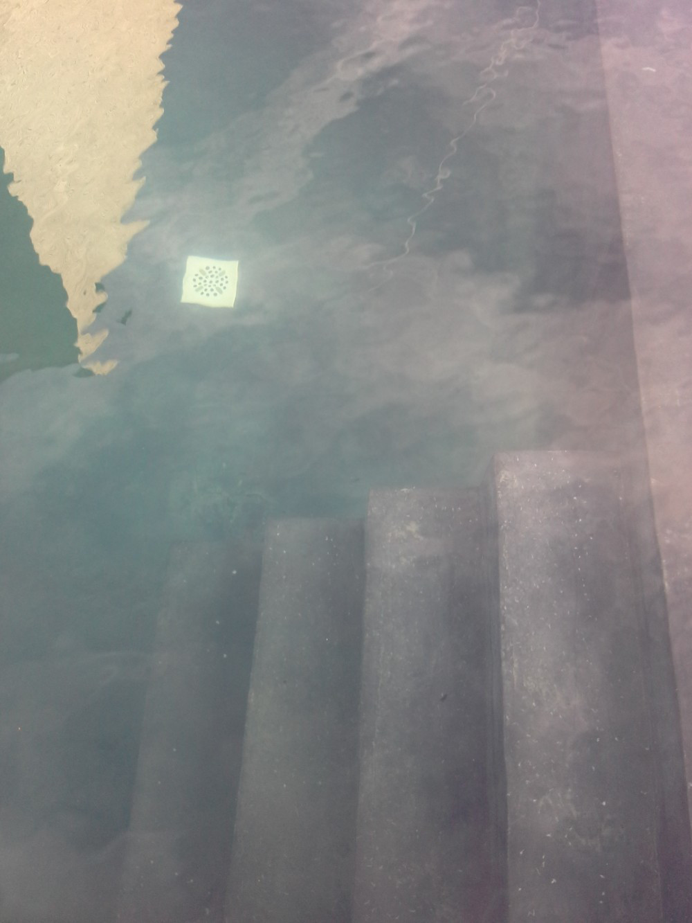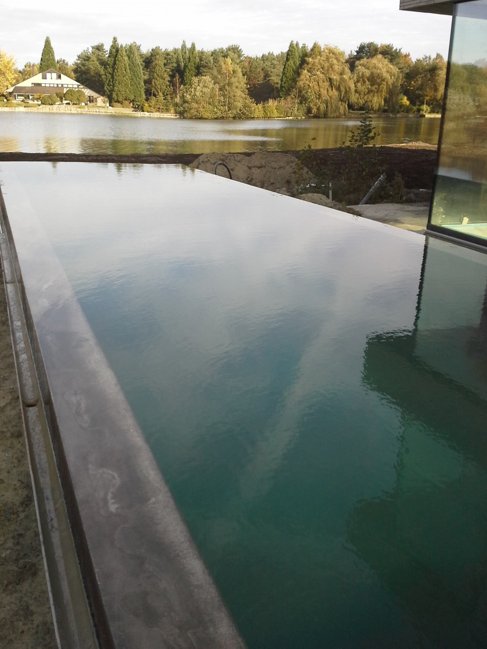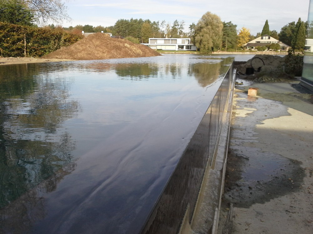 De hoge waterspiegel is exact even hoog als het niveau van het naastliggend terras.