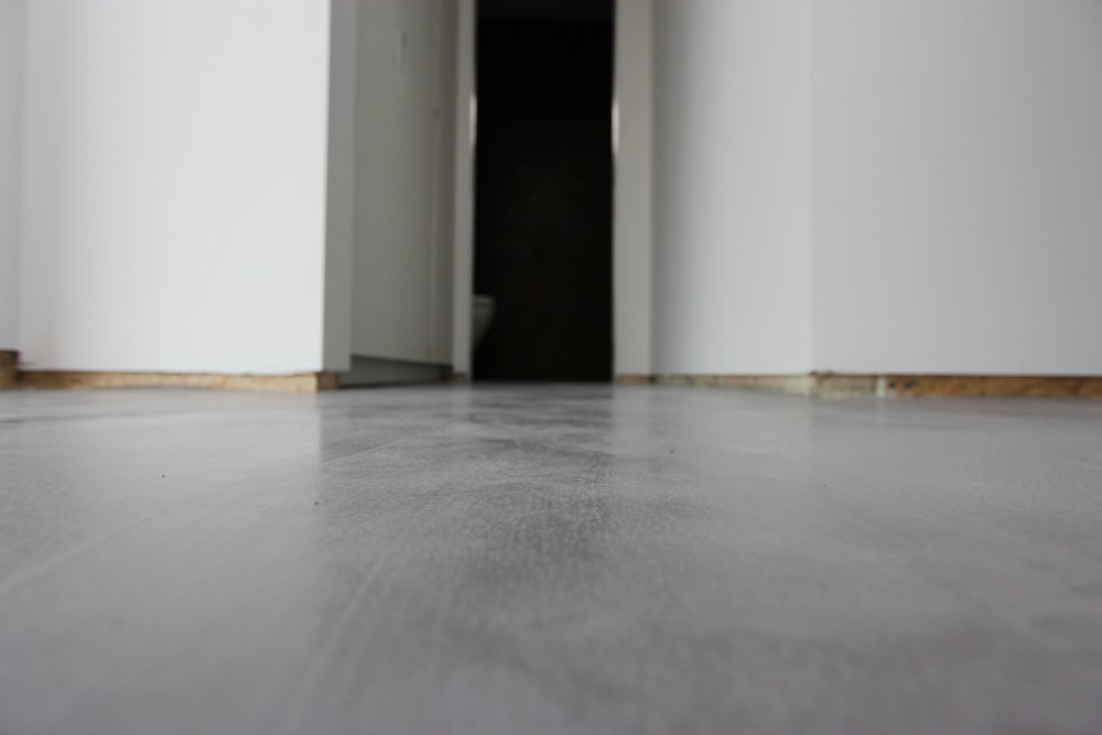 De vloer van de inkomhal kreeg dezelfde kleur als de keukenvloer.