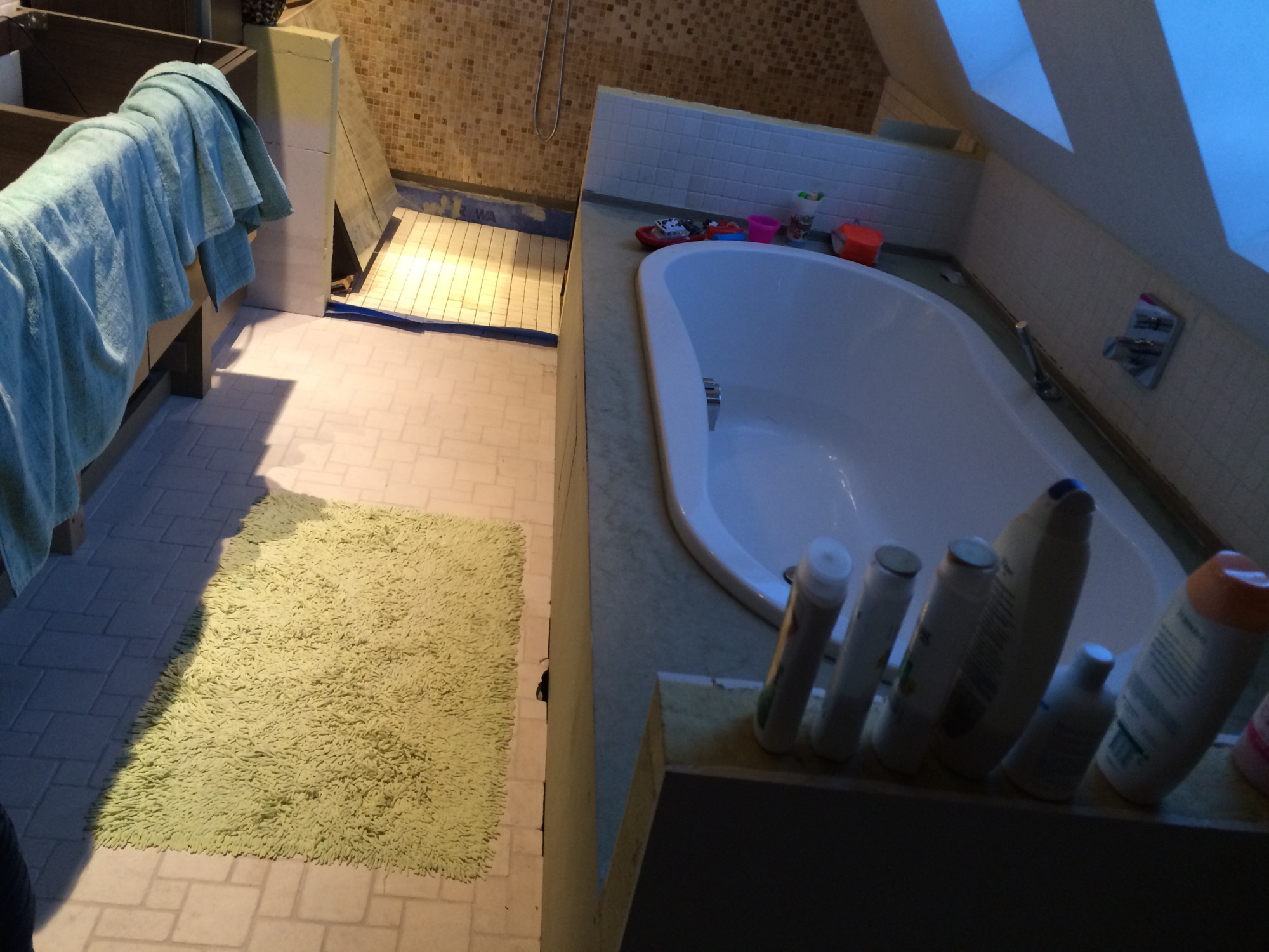 Dankzij het toepassen van mortex werd deze klassieke tegelbadkamer omgetoverd tot een stijlvolle badkamer.