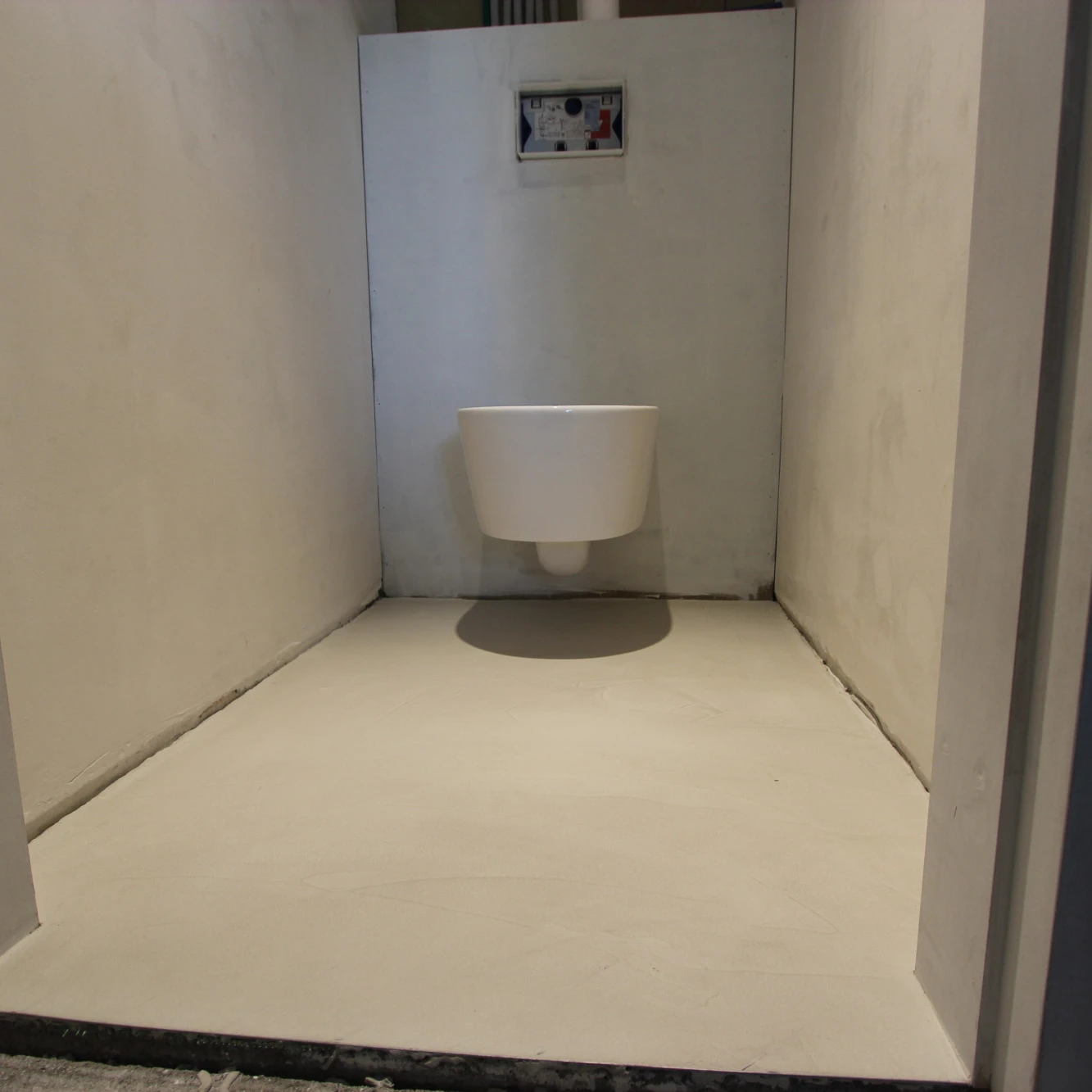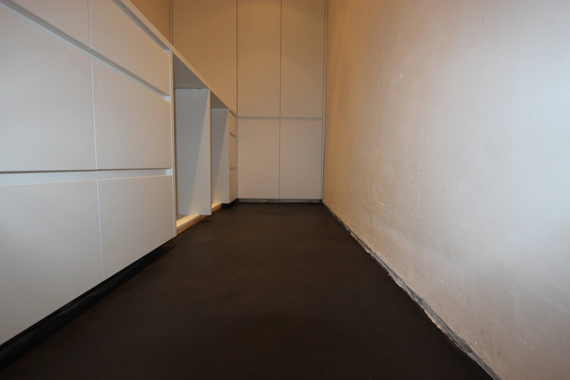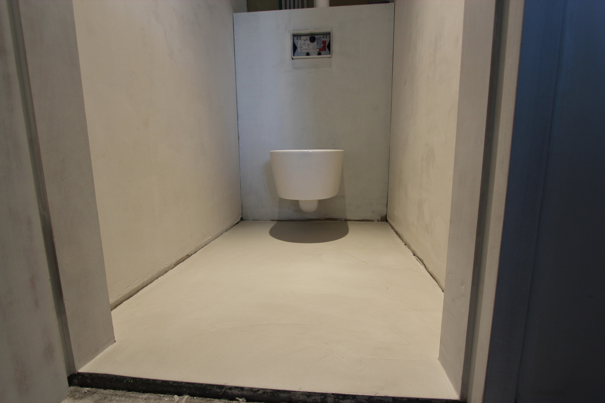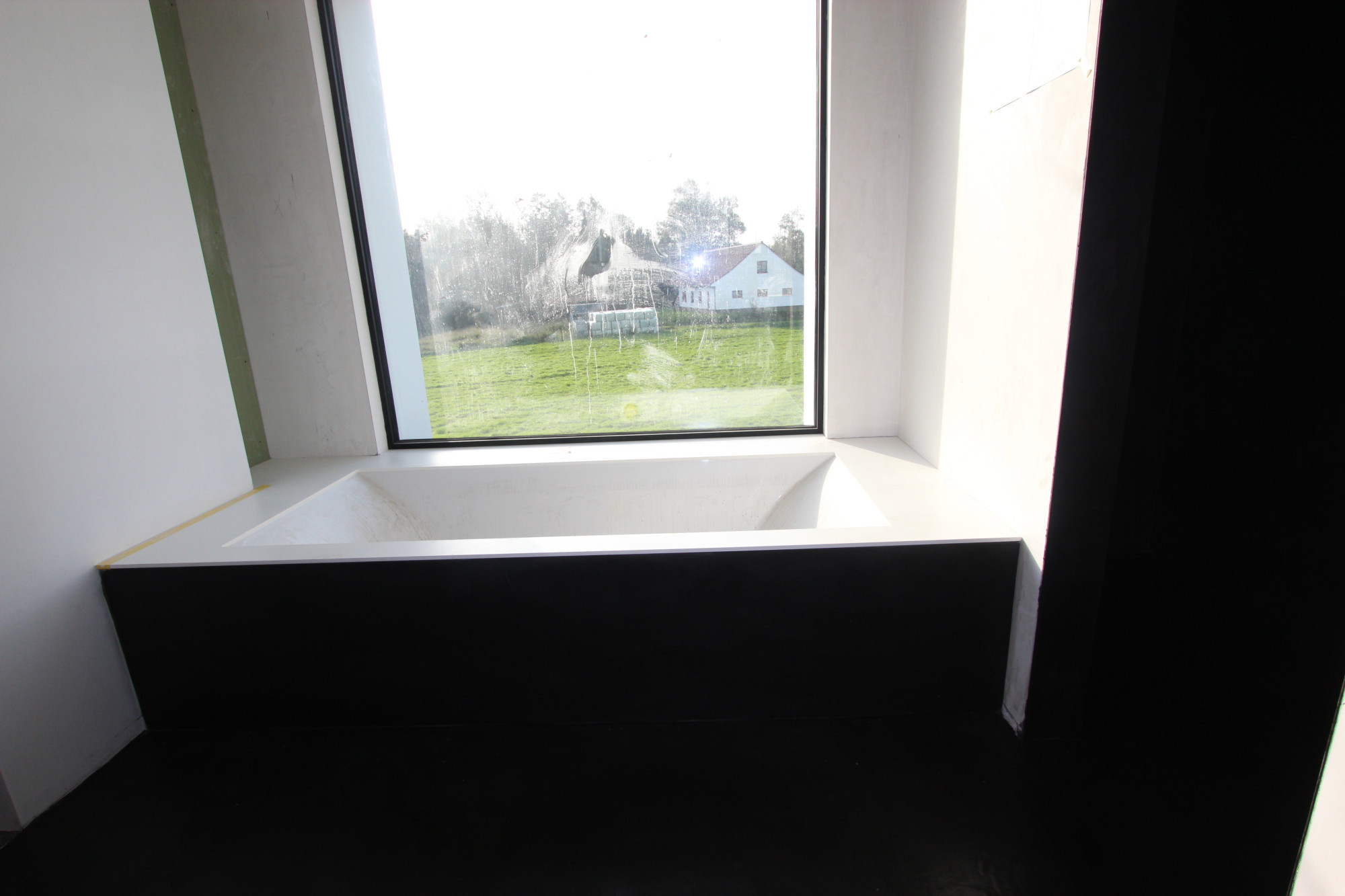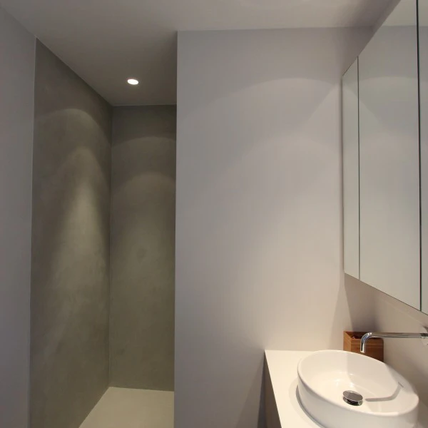 Zwart is de hoofdtoon!Zowel vloeren als doucheruimtes werden uitgewerkt in zwarte Mortex.