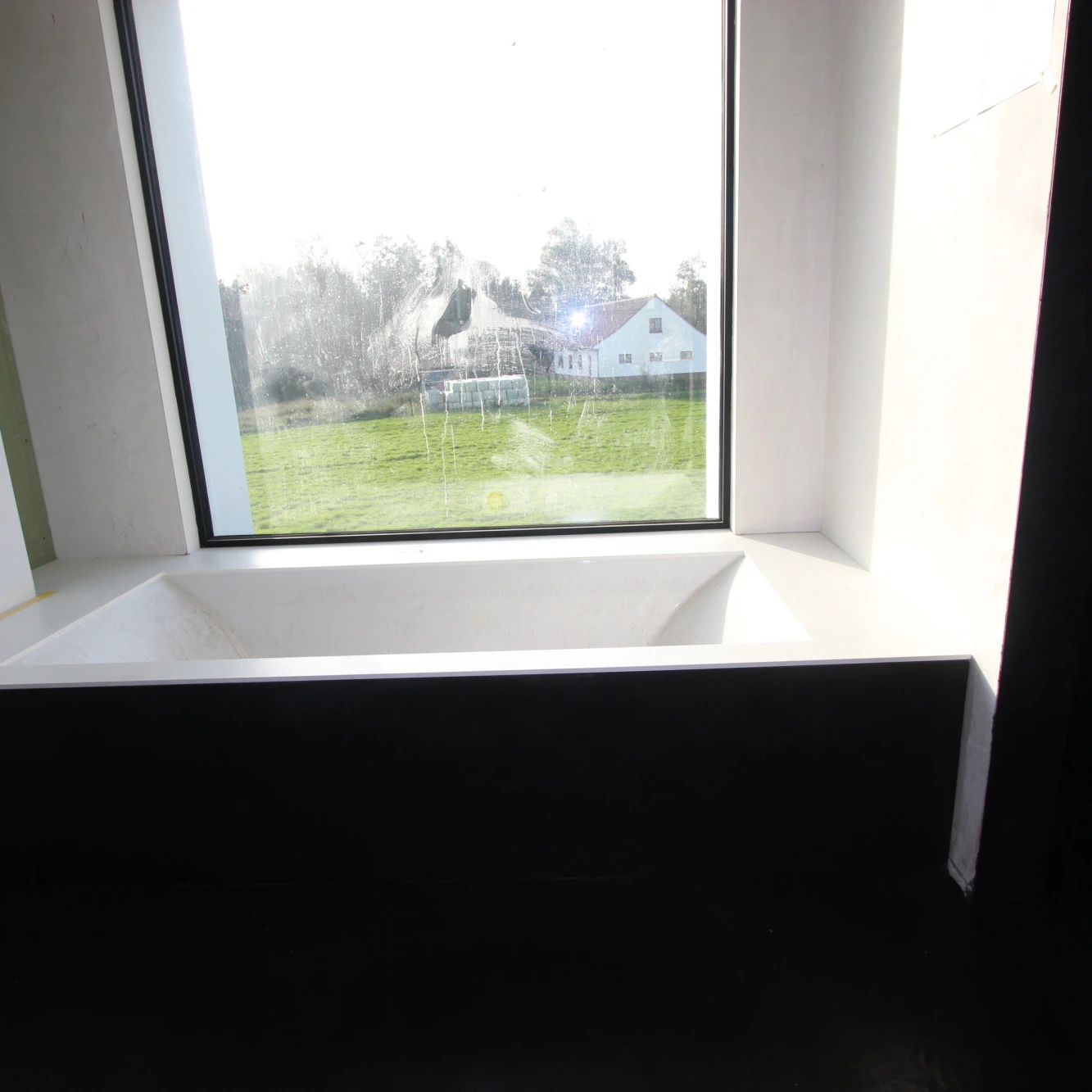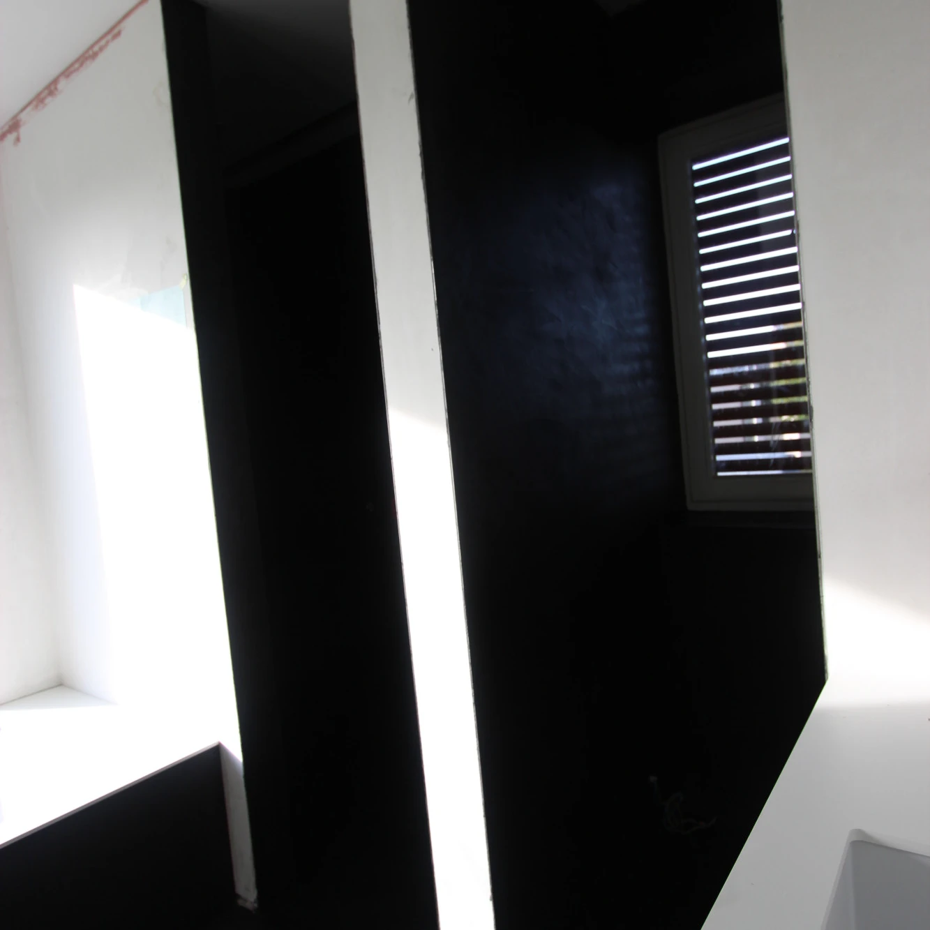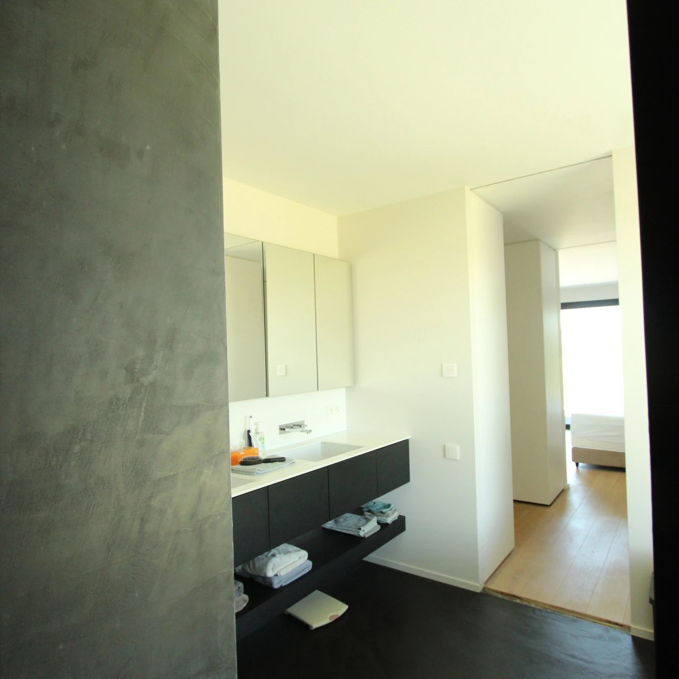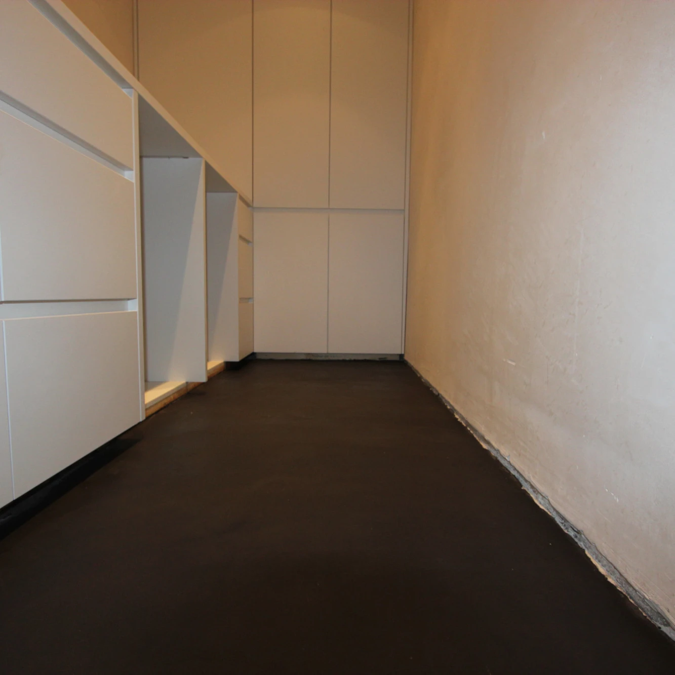 Zwart is de hoofdtoon!Zowel vloeren als doucheruimtes werden uitgewerkt in zwarte Mortex.