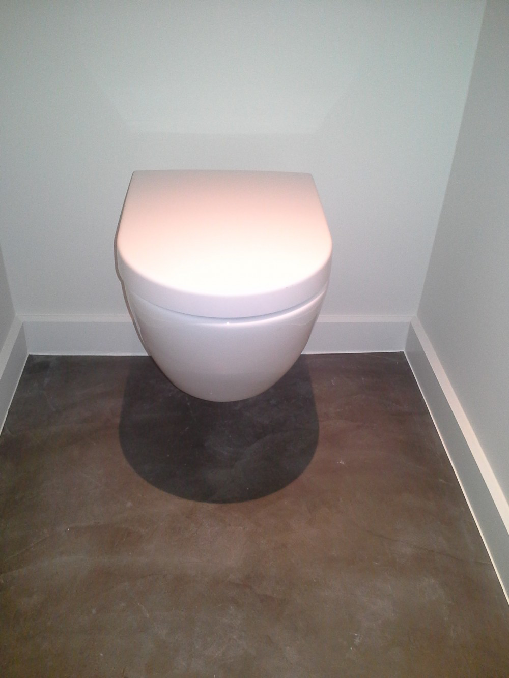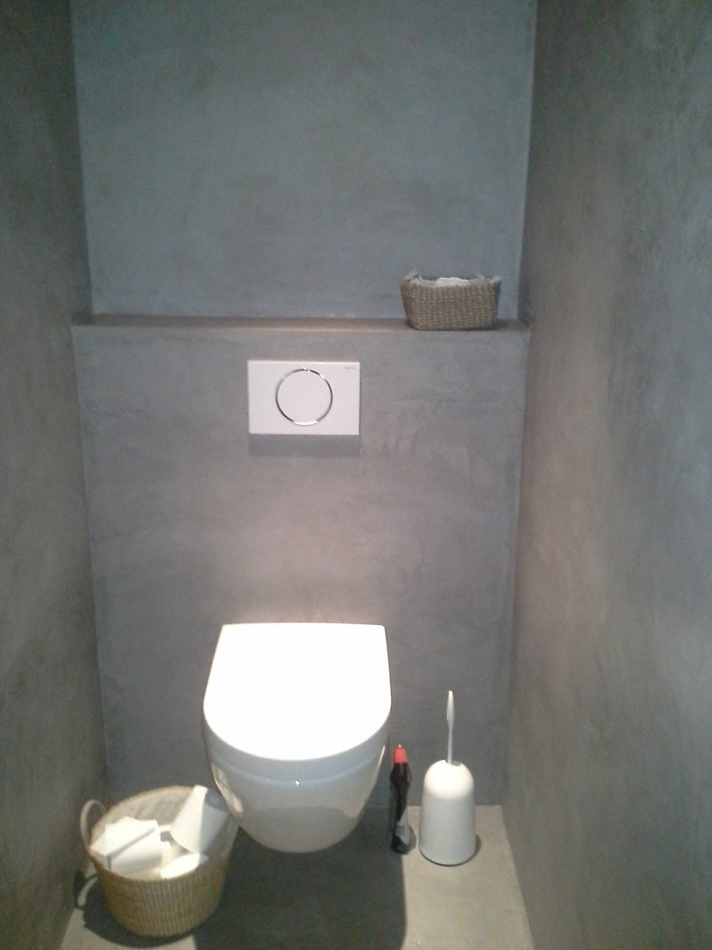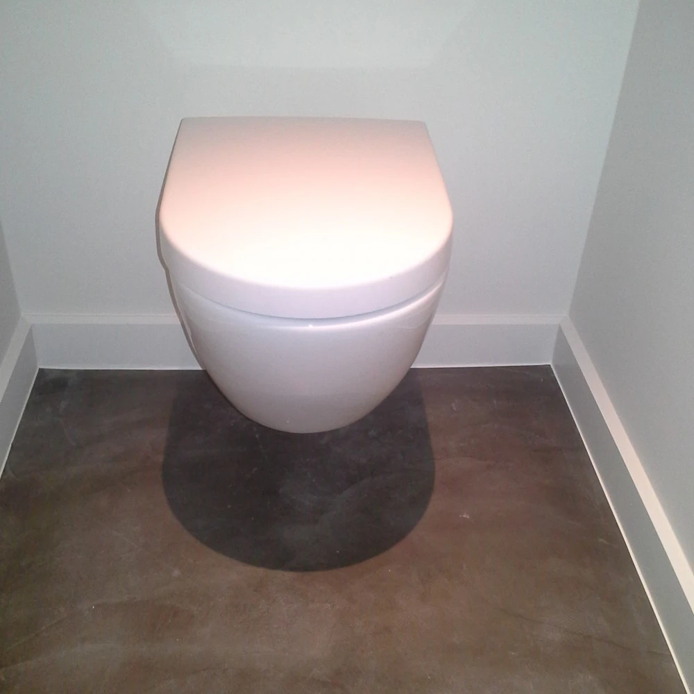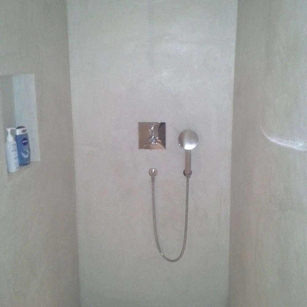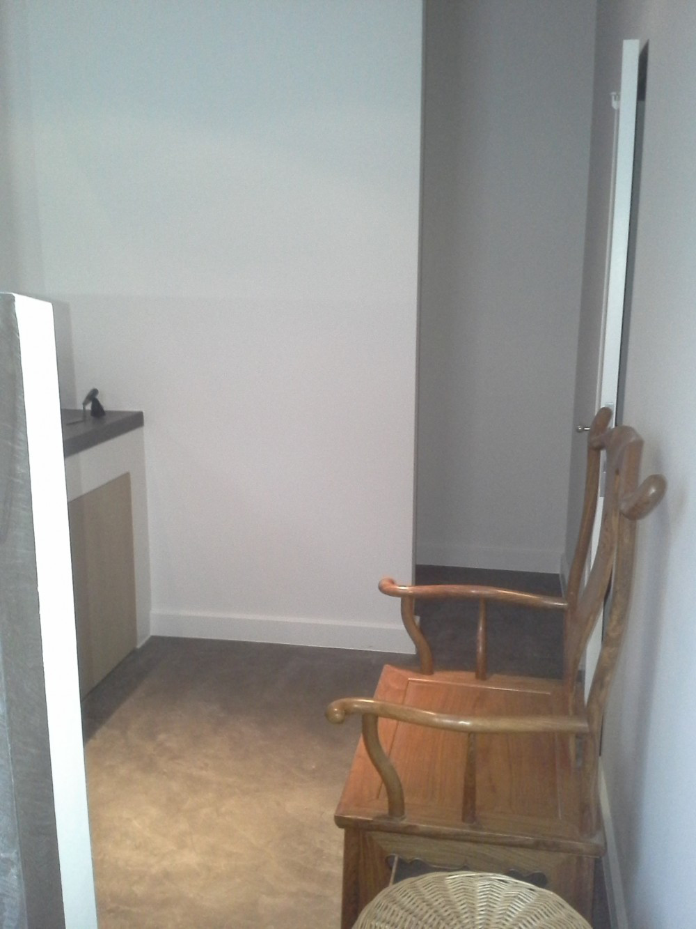 Zowel de vloeren, de douches, de badomkasting als het badmeubilair werden afgewerkt in Mortex.