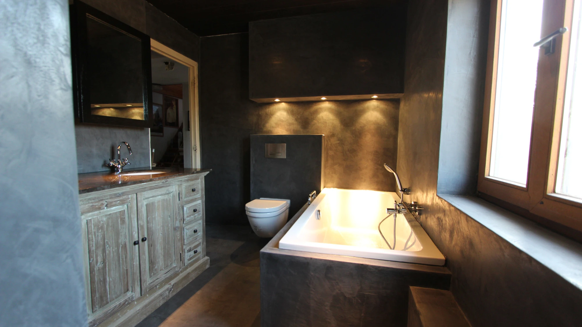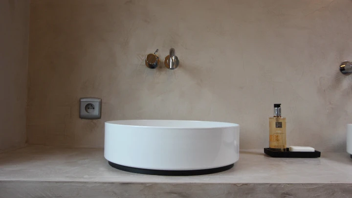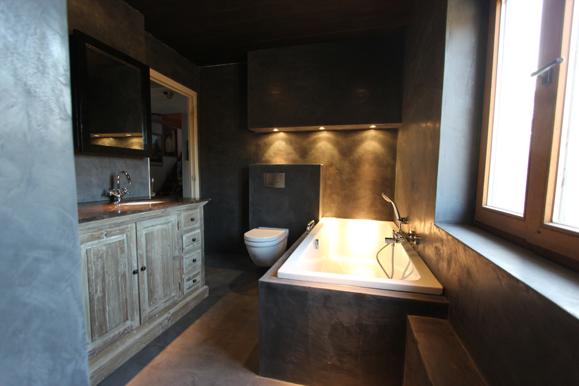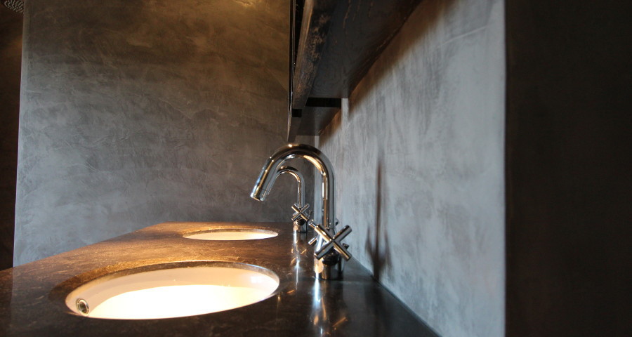 Het is een waterdicht product, bestaande uit natuurlijke kalken, hoogwaardige cement en acrylaat, waardoor het uiterst geschikt is voor buiten en binnen: werkbladen keukens, wanden, vloeren, badkamers(douches, wasbakken, badomkasting), trappen, terrassen met stutwerk, zwembaden,…